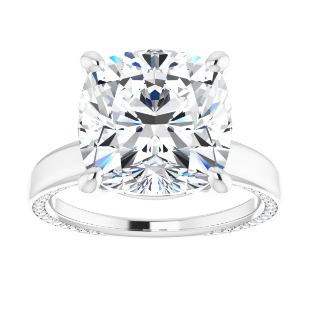 Penelope Women's 14K Gold Cushion and Round Cut Lab-Grown Diamond Accented Engagement Ring | Prong Pinpoint Set | 7ct
