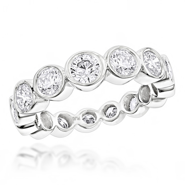 Platinum Natural or Lab-Grown Diamond Bezel Eternity Ring for Men and Women 2.09ct