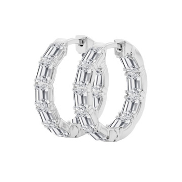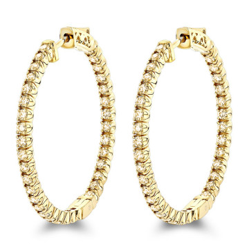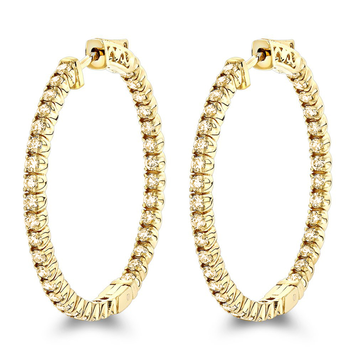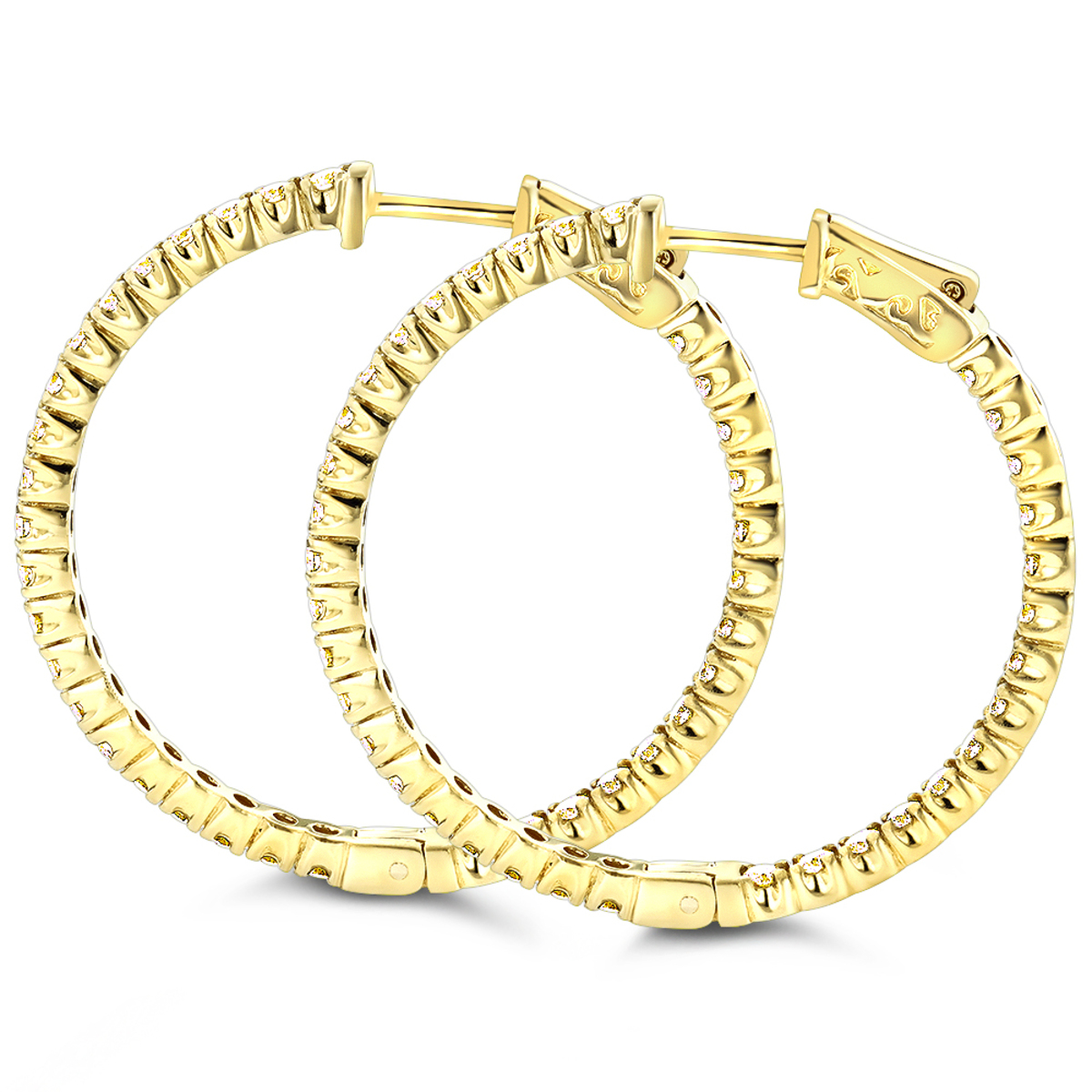 Prong Cut Diamond Hoop Earrings for Women | 14K Gold | Hinged Back | 2.2ct