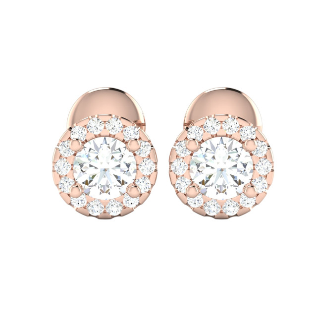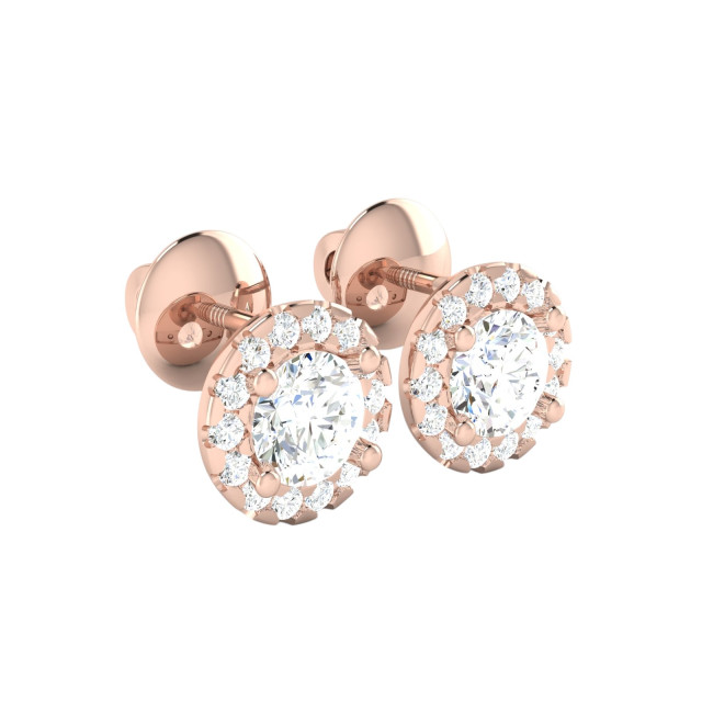 Prong Halo Half Bezel Setting Diamond Stud Earrings for Women | 14K Gold | Screw Back | 1.17ct