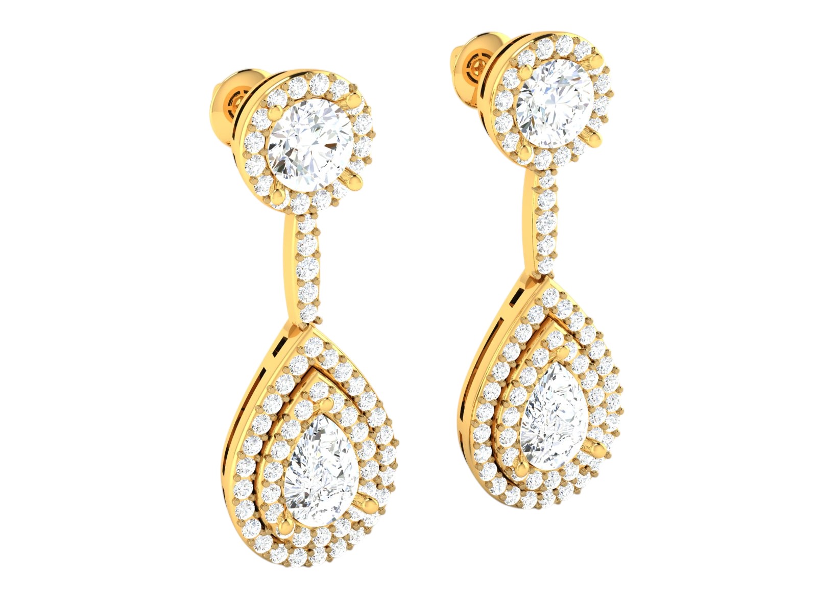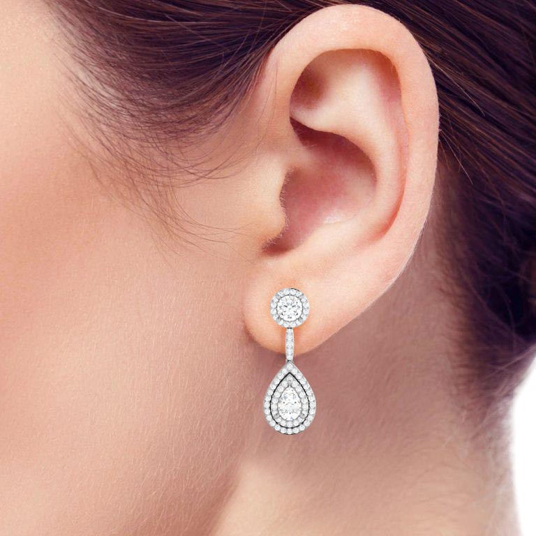 Prong Halo Setting Diamond Teardrop Earrings for Women | 14K Gold | Screw Back | 5.52ct