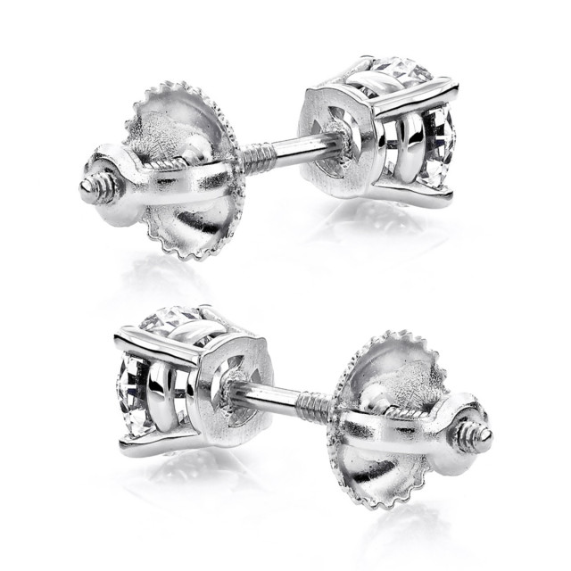 Prong Solitaire Cut Diamond Stud Earrings for Men and Women | 18K Gold | Screw Back | 2ct