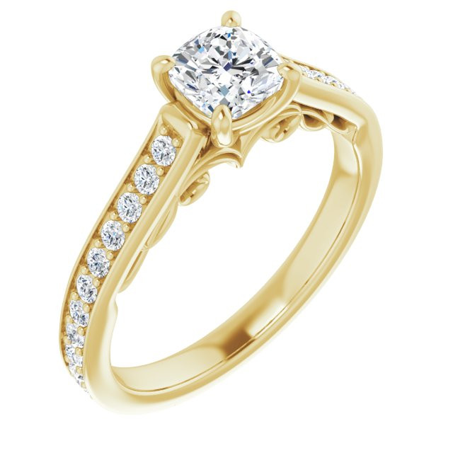 Quinn Women's 14K Gold Cushion and Round Cut Natural Diamond Accented Engagement Ring | Prong Pinpoint Set | 1ct
