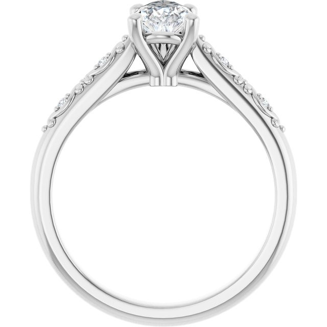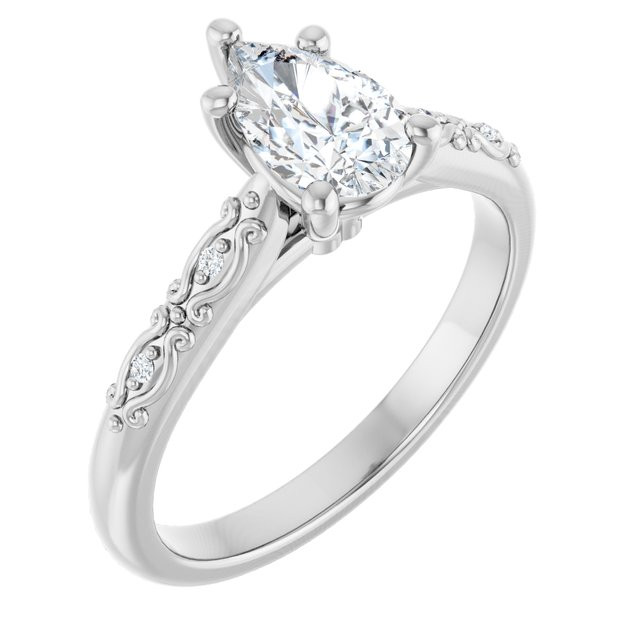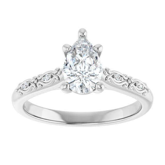 Rachel Women's 14K Gold Pear and Round Cut Natural Diamond Accented Thin Engagement Ring | Prong Pinpoint Set | 1ct