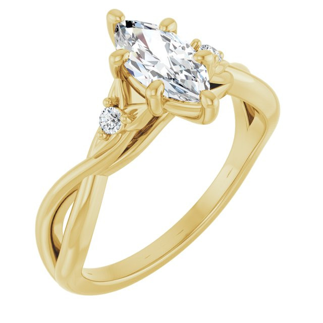 Reese Women's Marquise and Round Natural Diamond Accented Thin Engagement Ring | 14K Gold