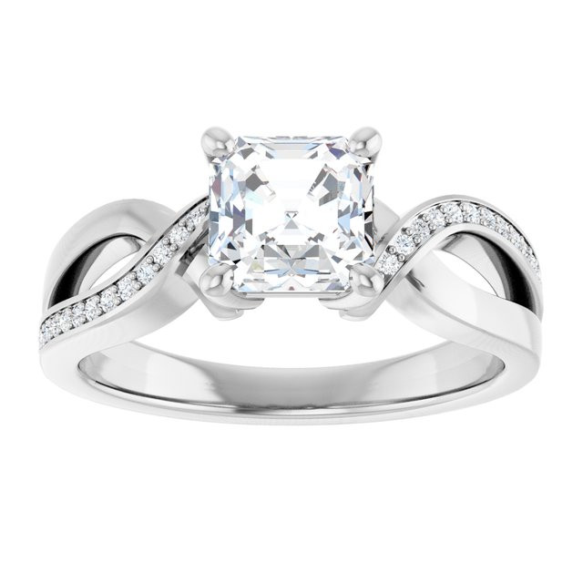 Riley Women's 14K Gold Asscher and Round Cut Natural Diamond Accented Engagement Ring | Prong Pinpoint Set | 4ct