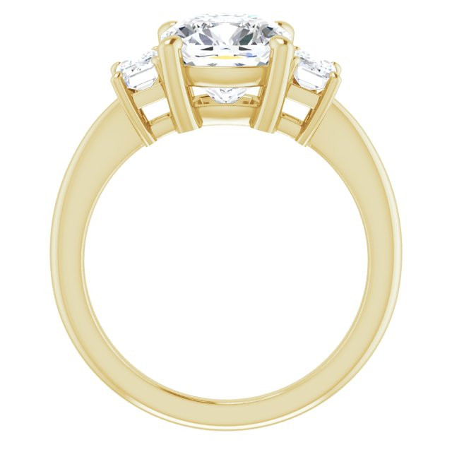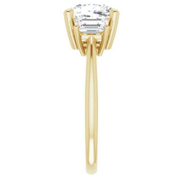 Rose Women's 14K Gold Cushion and Emerald Cut Natural Diamond Three-Stone Engagement Ring | Prong Set | 4ct