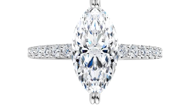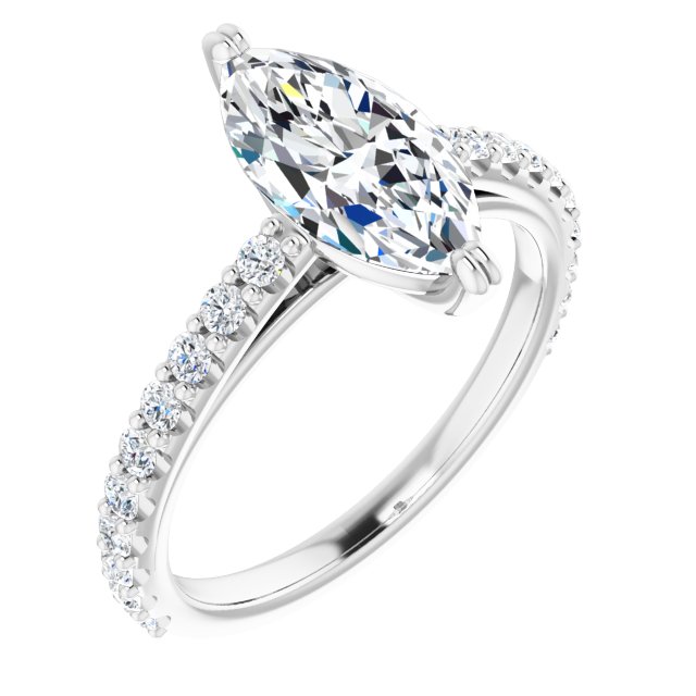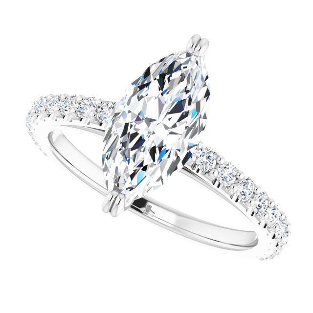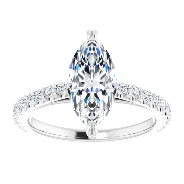 Rosemary Women's 14K Gold Marquise and Round Cut Lab-Grown Diamond Accented Engagement Ring | Prong Shared Set | 2ct