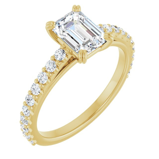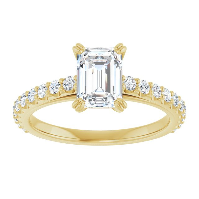 Rosemary Women's Emerald and Round Natural Diamond Accented Engagement Ring | 14K Gold | 1ct