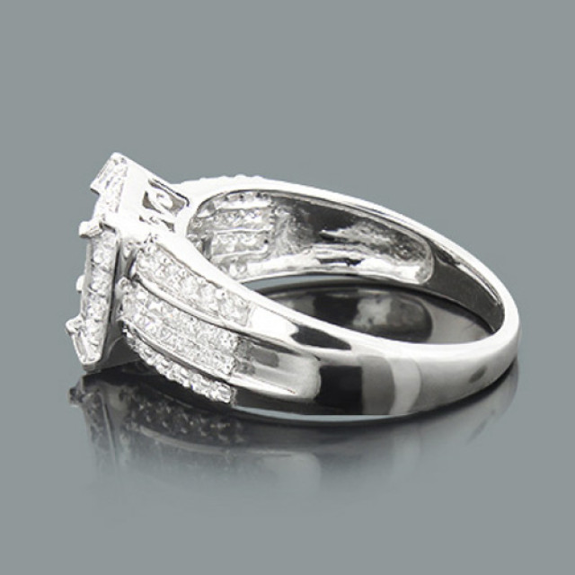 This Round Princess Cut Diamond Engagement Ring in 14K gold showcases 1.18 carats of sparkling diamonds. Featuring a luxurious design and a highly polished gold finish, this ladies diamond ring is available in 14K white, yellow and rose gold.