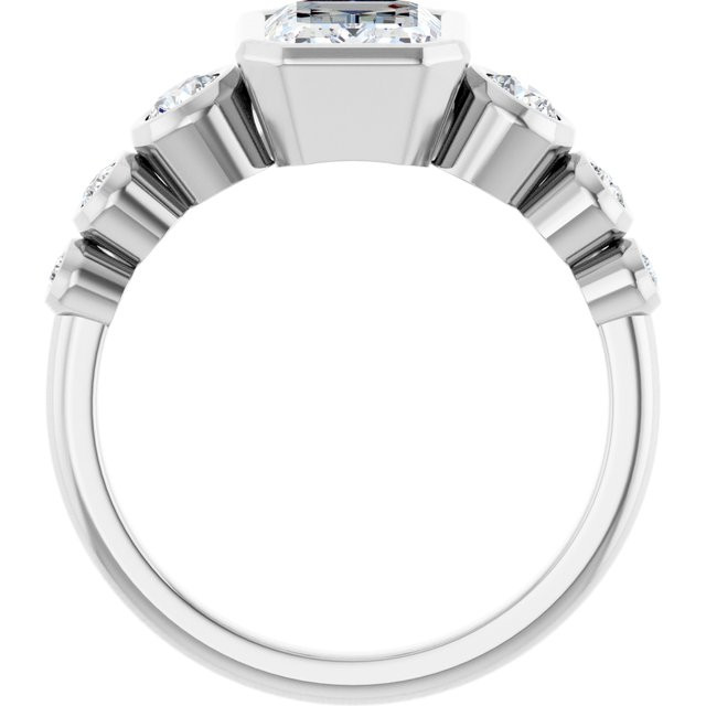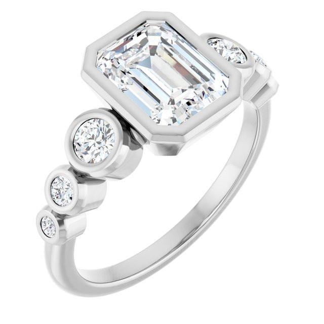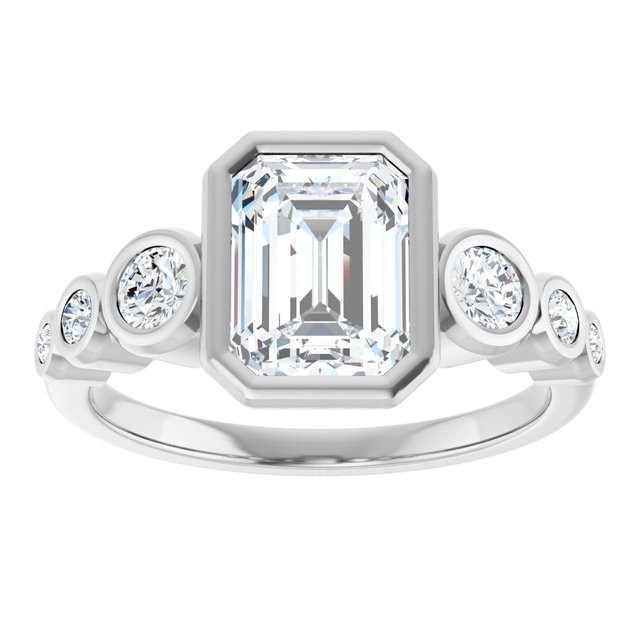 Rowan Women's 14K Gold Emerald and Round Cut Lab-Grown Diamond Thin Seven-Stone Engagement Ring | Bezel Set | 2ct