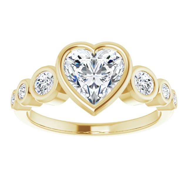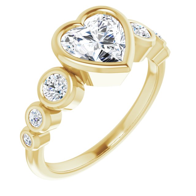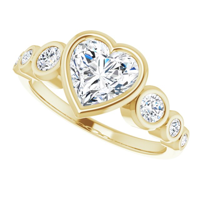 Rowan Women's 14K Gold Heart and Round Cut Natural Diamond Thin Seven-Stone Engagement Ring | Bezel Set | 1ct