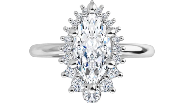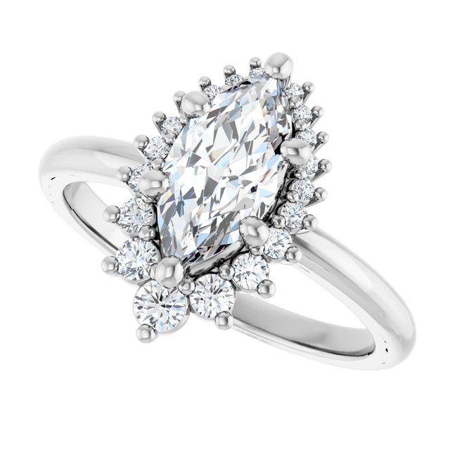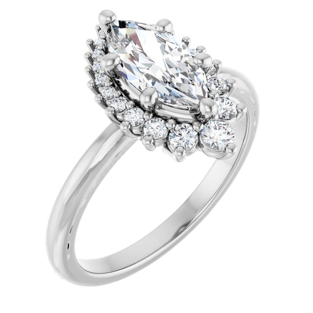Ryleigh Women's Marquise and Round Natural Diamond Thin Halo Engagement Ring | 14K Gold | 1ct