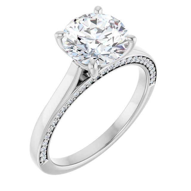 Samantha Women's 14K Gold Round Cut Natural Diamond Accented Engagement Ring | Prong Pinpoint Set | 2ct