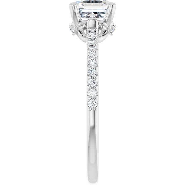 Savannah Women's 14K Gold Asscher and Round Cut Natural Diamond Accented Engagement Ring | Prong Shared Set | 3ct