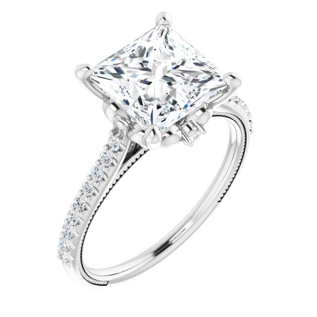 Savannah Women's 14K Gold Princess and Round Cut Natural Diamond Accented Engagement Ring | Prong Shared Set | 3ct