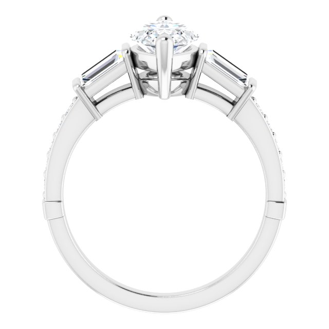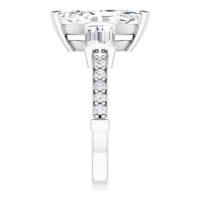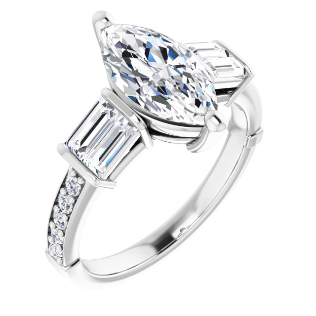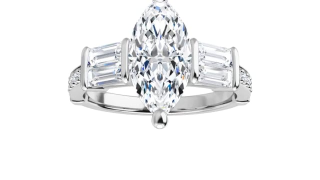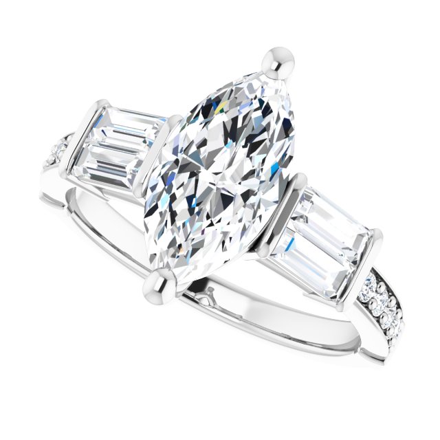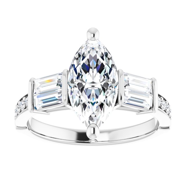 Scarlett Women's 14K Gold Straight Baguette and Marquise and Round Cut Natural Diamond Accented Engagement Ring | Prong Bar Pinpoint Set | 2ct
