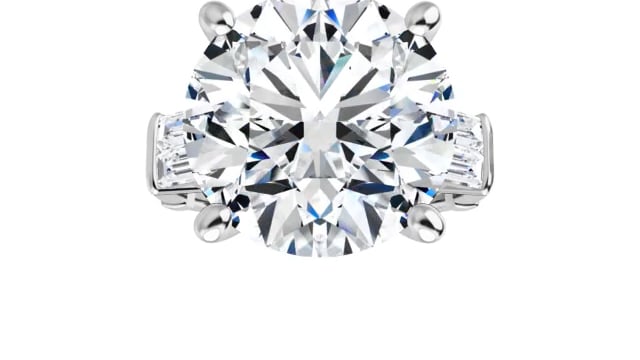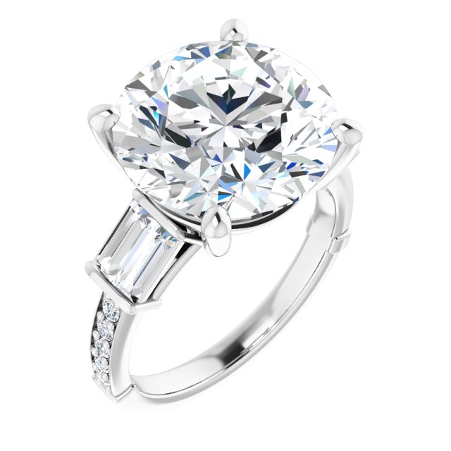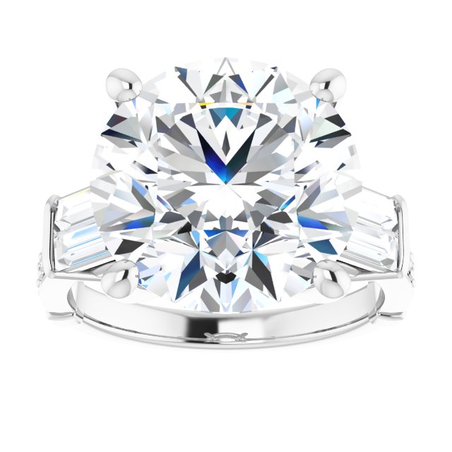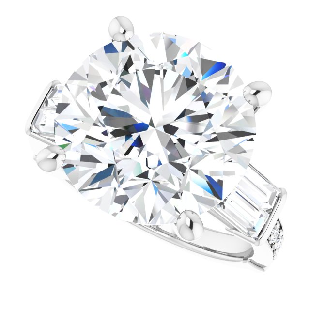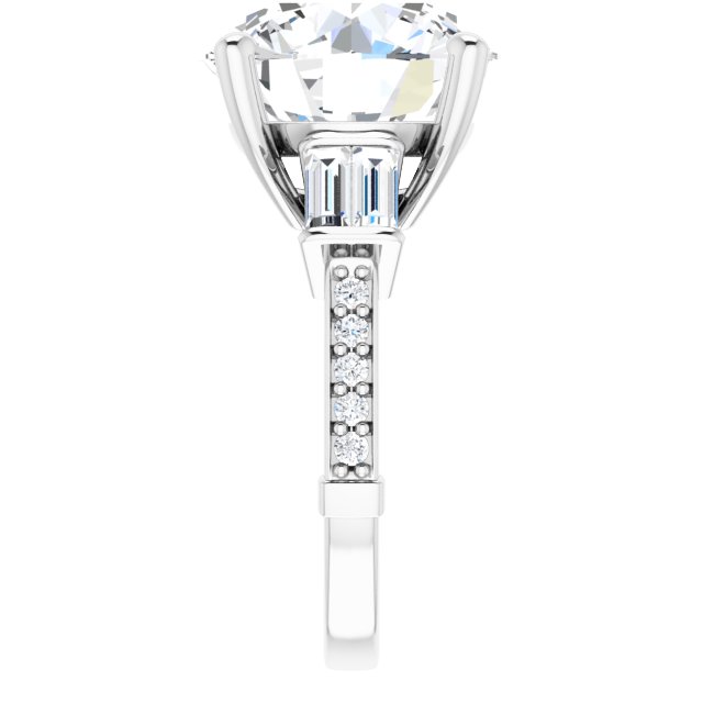 Scarlett Women's 14K Gold Straight Baguette and Round Cut Lab-Grown Diamond Accented Engagement Ring | Prong Bar Pinpoint Set | 8ct
