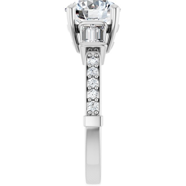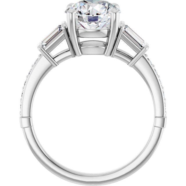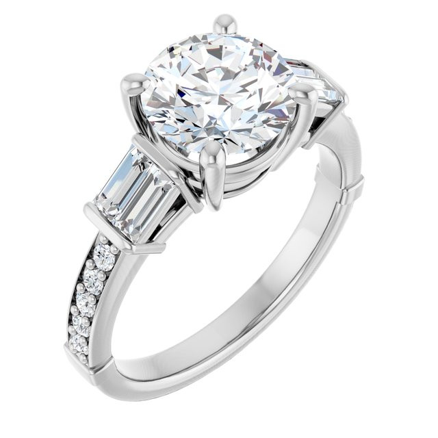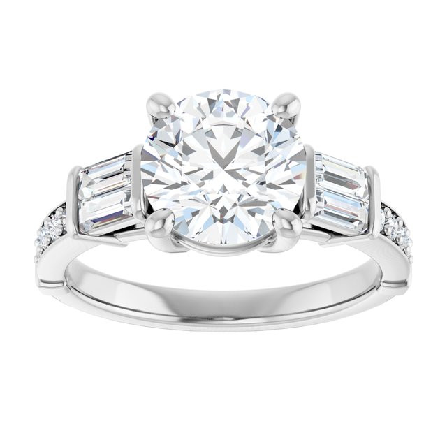 Scarlett Women's 14K Gold Straight Baguette and Round Cut Natural Diamond Accented Engagement Ring | Prong Bar Pinpoint Set | 7ct