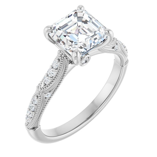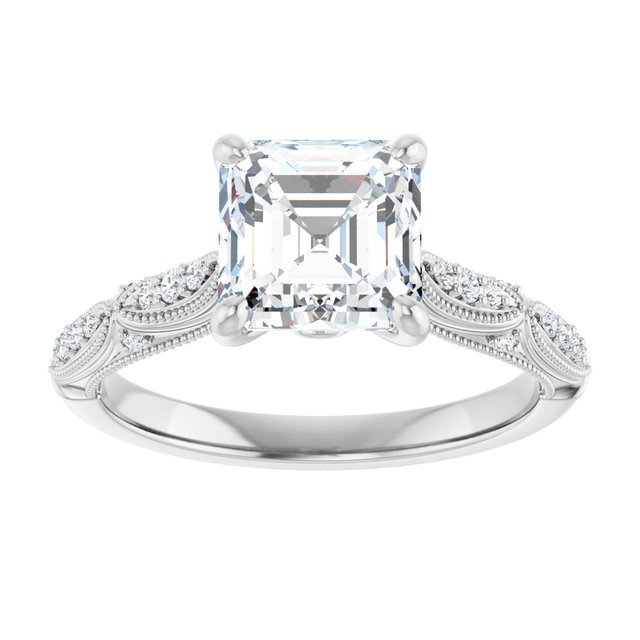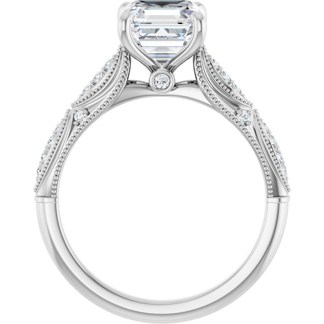 Serenity Women's Asscher and Round Natural Diamond Accented Bezel Engagement Ring | 14K Gold | 3ct