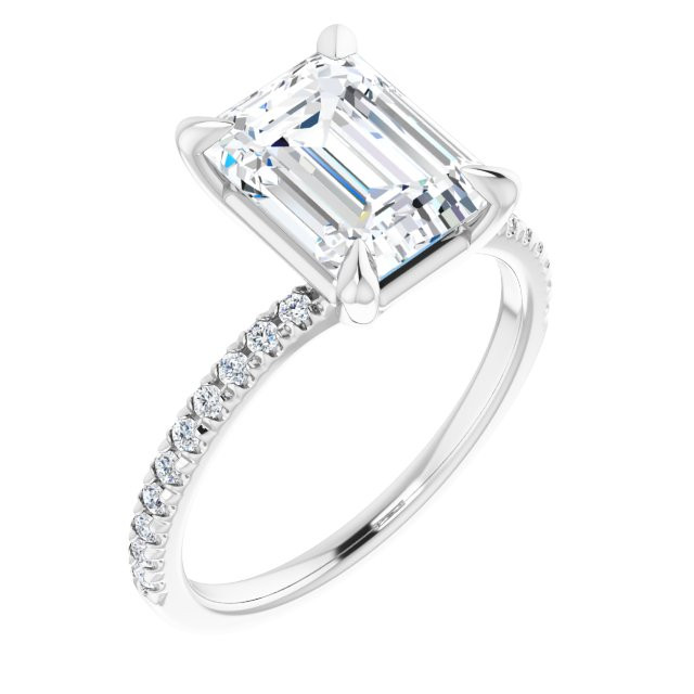 Sienna Women's 14K Gold Emerald and Round Cut Lab-Grown Diamond Thin French-Set Engagement Ring | Claw Prong French Set Set | 3ct