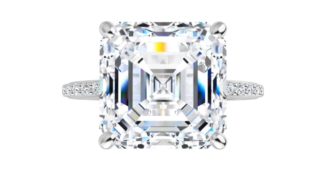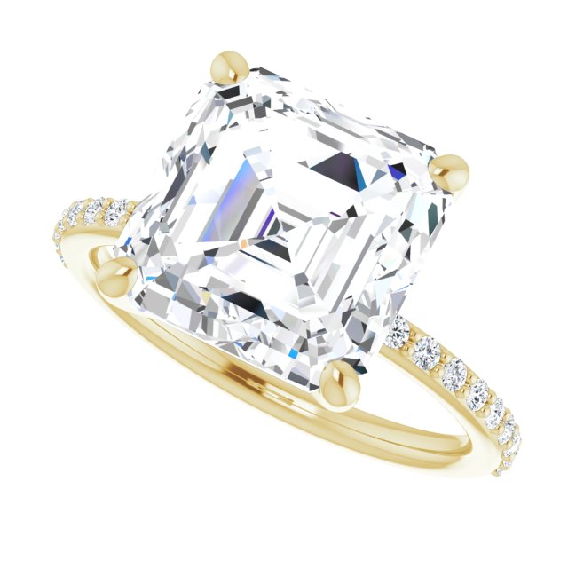 Sofia Women's 14K Gold Asscher and Round Cut Lab-Grown Diamond Engagement Ring | Prong Pinpoint Set | 5ct