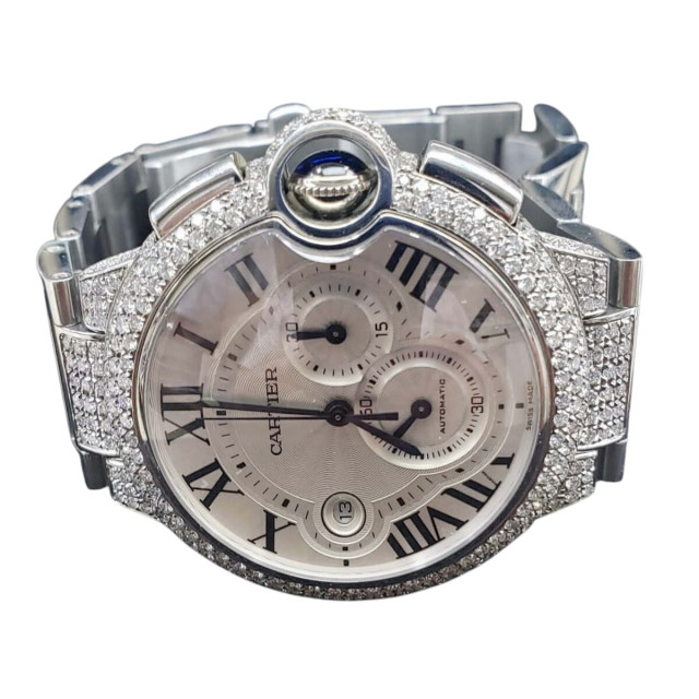 This Men's Cartier Ballon Bleu is a luxurious and stylish watch. The watch is made of Stainless Steel, offering a premium feel. The case measures 44 mm. The bracelet is made of Stainless Steel and is set with White. The dial is Silver, enhancing its visual appeal. Powered by an Automatic movement. Offered in Good condition, and comes with a seller's warranty of 60 months. Also available on custom order with additional options.