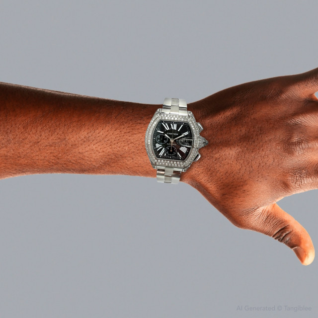 This Men's Cartier Roadster is a luxurious and stylish watch. The watch is made of Stainless Steel, offering a premium feel. The case measures 42 mm. The bracelet is made of Stainless Steel. The bezel is made of Stainless Steel and is set with White. The dial is Black, enhancing its visual appeal. Powered by an Automatic movement, the watch includes functions such as Date Indicator. Offered in Good condition, and comes with a seller's warranty of 60 months. Also available on custom order with additional options. Please note this Cartier watch is pre-owned, in excellent condition, the diamonds are high quality, natural diamonds, set by our master craftsmen, watch box might show signs of wear (watch itself will be in perfect condition), comes with a 5 year warranty from ItsHot.