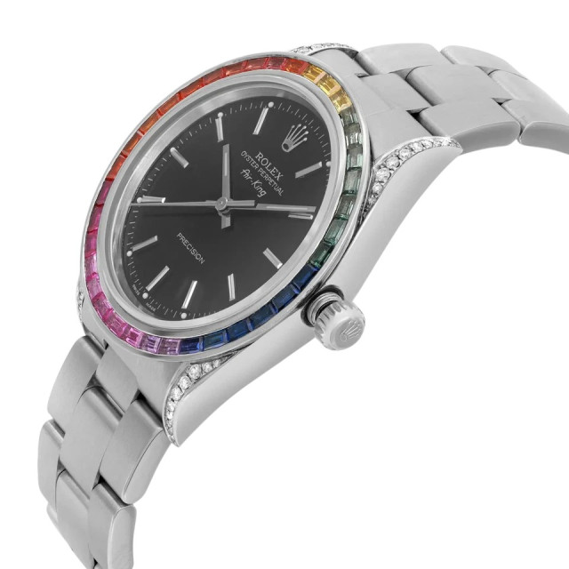 Stainless Steel Men's Rolex Watch | Air-King | 34 mm | Oyster Bracelet | Diamond Bezel | Black Dial