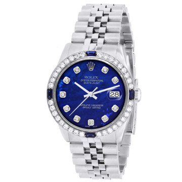 Stainless Steel Men's Rolex Watch | Datejust | 36 mm | Jubilee Bracelet | Diamond Sapphire Bezel | Blue Dial