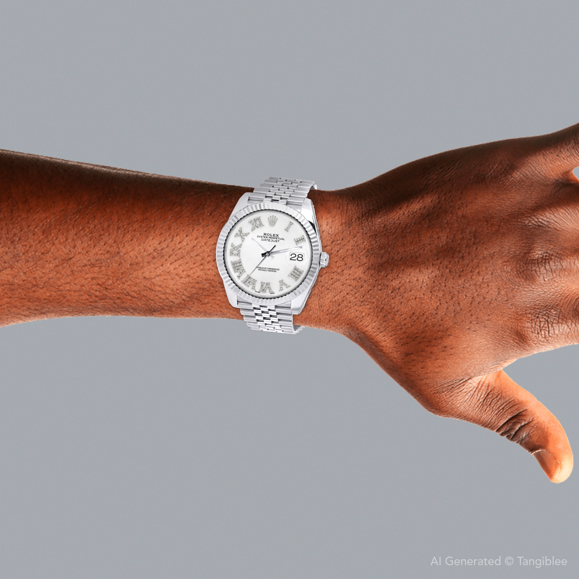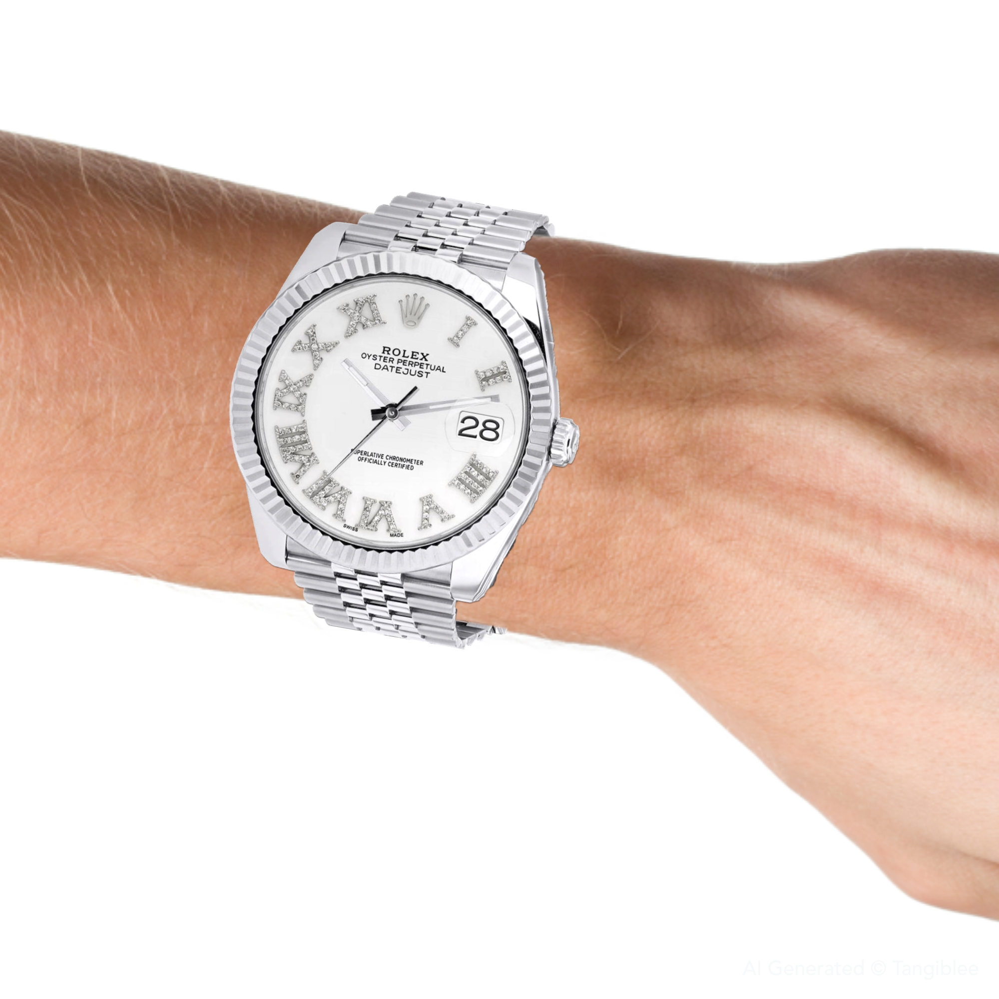 This Men's Rolex Datejust is a luxurious and stylish watch. It features a White color scheme, adding sophistication to its design. The watch is made of Stainless Steel, offering a premium feel. The case measures 41 mm. The bracelet is made of White Stainless Steel It features a Jubilee style bracelet for a comfortable fit. The bezel is made of White Stainless Steel. The dial is White, enhancing its visual appeal. Powered by an Automatic movement, the watch includes functions such as Date Indicator. Offered in Very Good condition, and comes with a seller's warranty of 60 months. Also available on custom order with additional options. These pre-owned Rolex watches are authentic Rolex watches with genuine diamonds, in excellent condition, they are checked for authenticity and basic water resistance. Watches will withstand an occasional rain just fine, but they are not diver's watches and should not be worn in shower or while swimming.