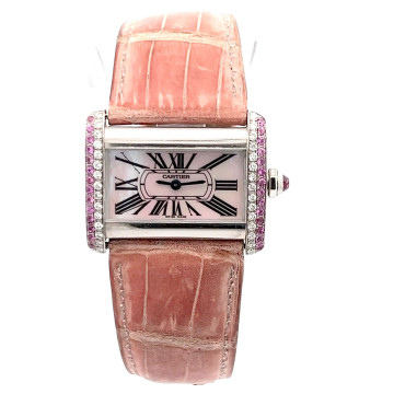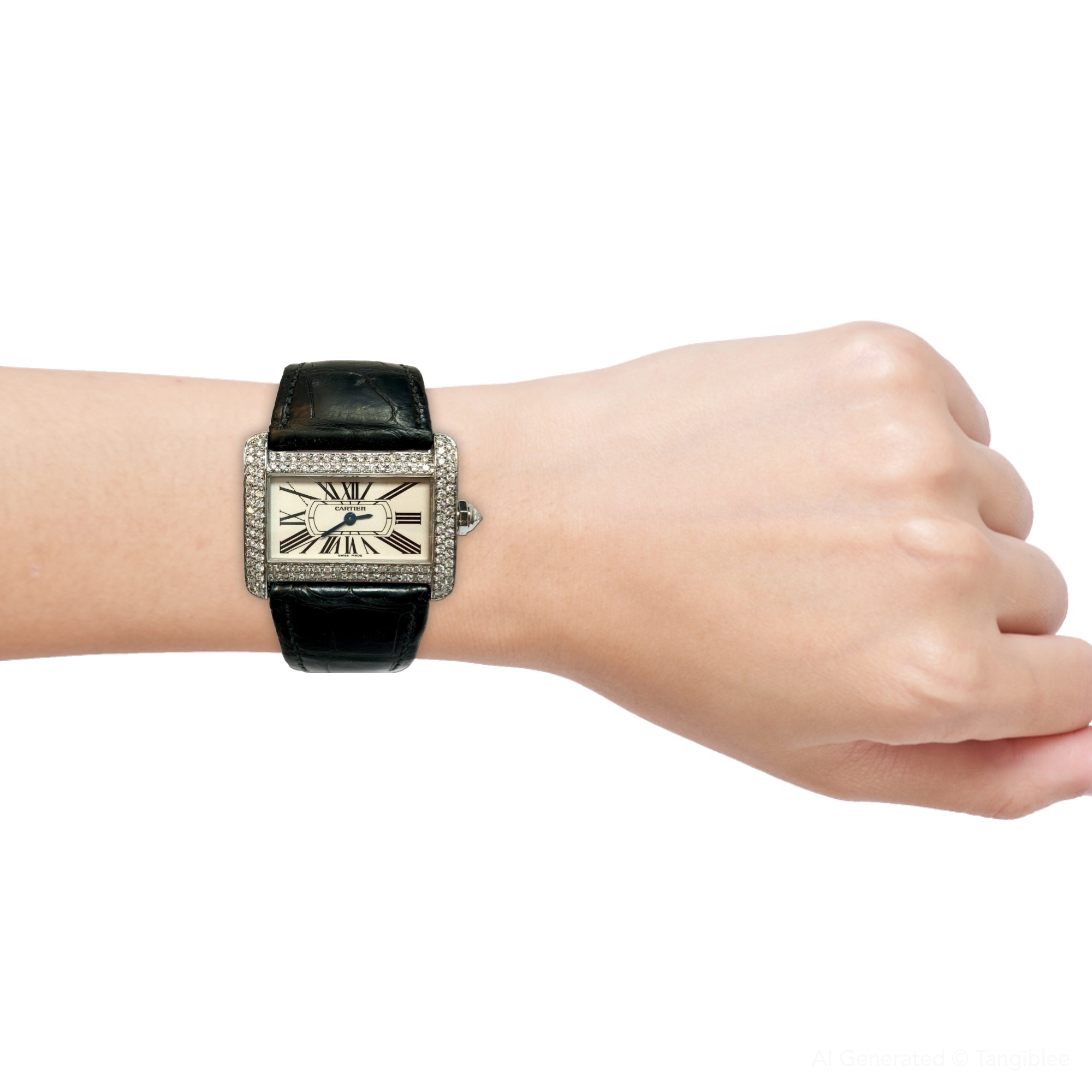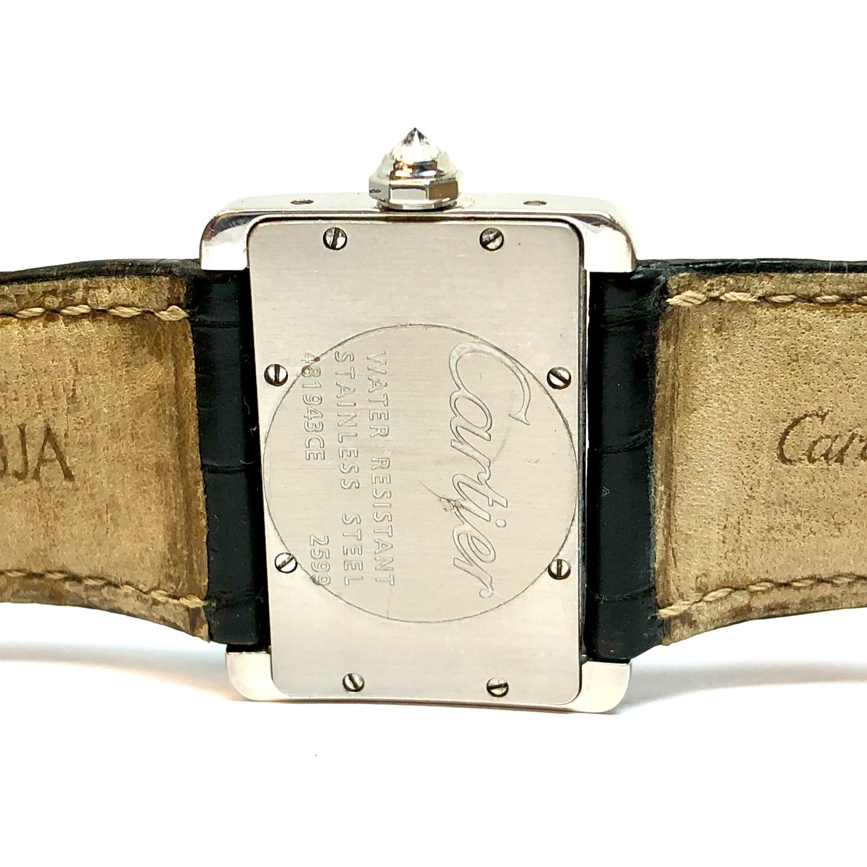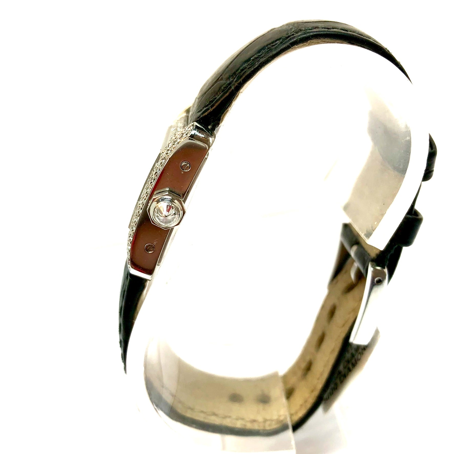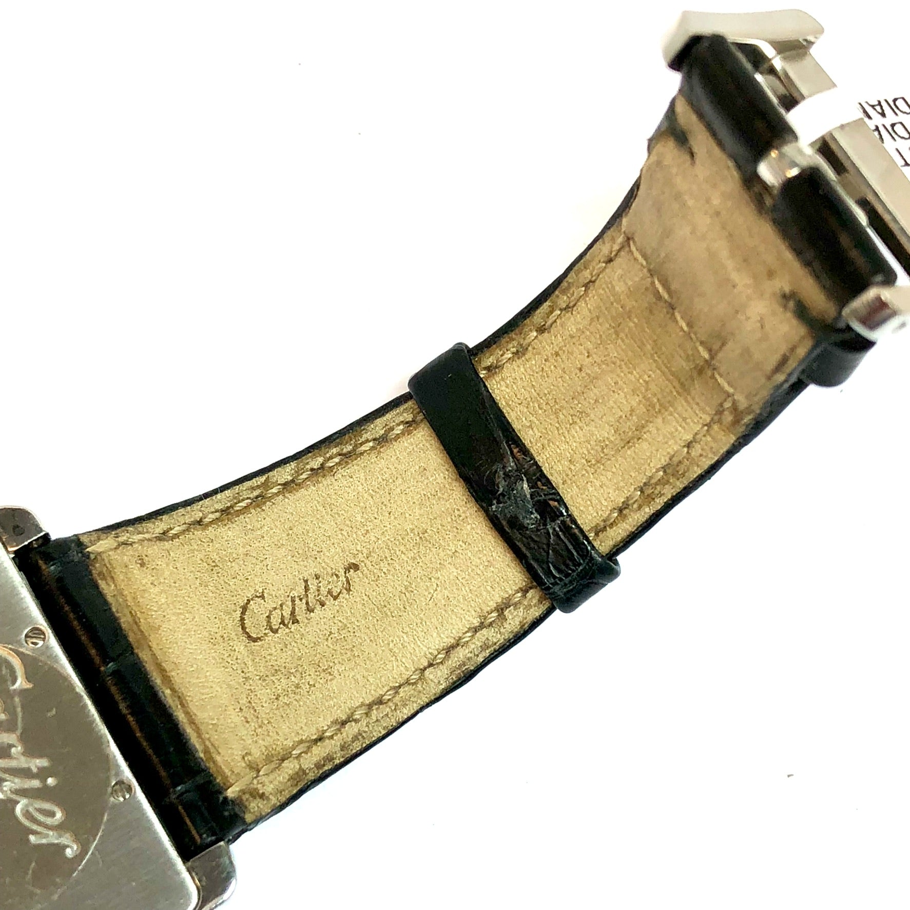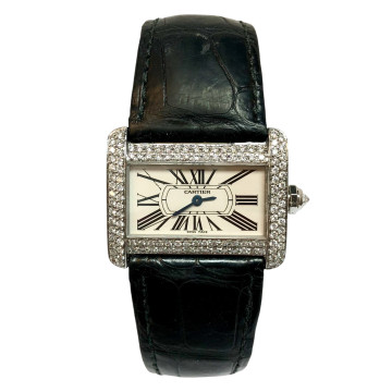 This Women's Cartier is a luxurious and stylish watch. The watch is made of Stainless Steel, offering a premium feel. The case measures 31 mm. The bracelet is made of Black Genuine Leather. The bezel is made of Stainless Steel and is set with White. The dial is Cream, enhancing its visual appeal. Powered by a Quartz movement. Offered in Good condition, and comes with a seller's warranty of 60 months. Also available on custom order with additional options.