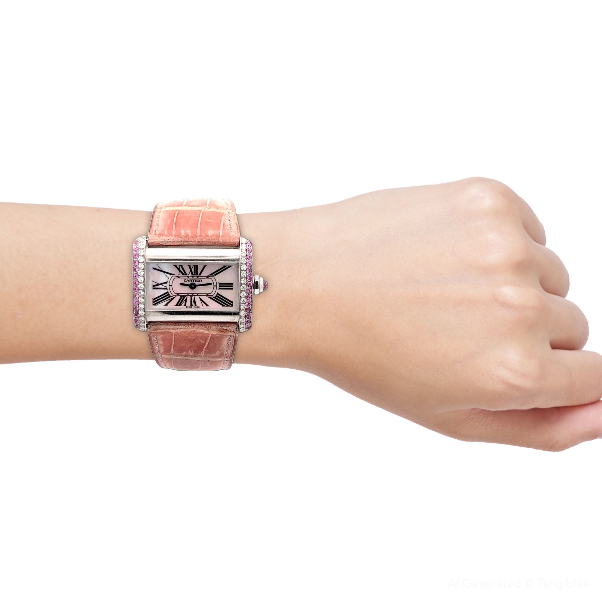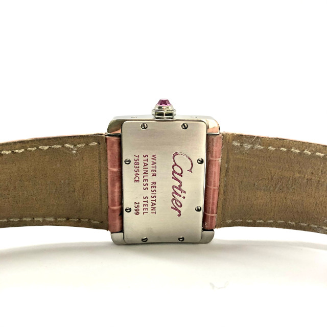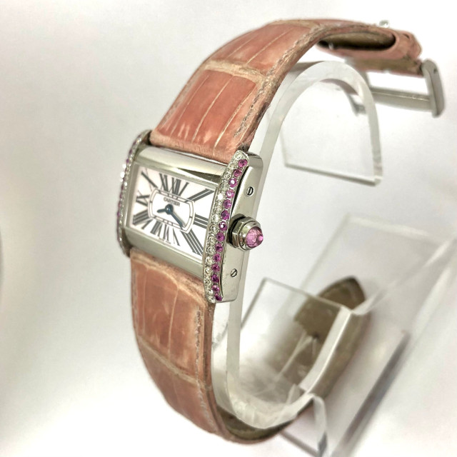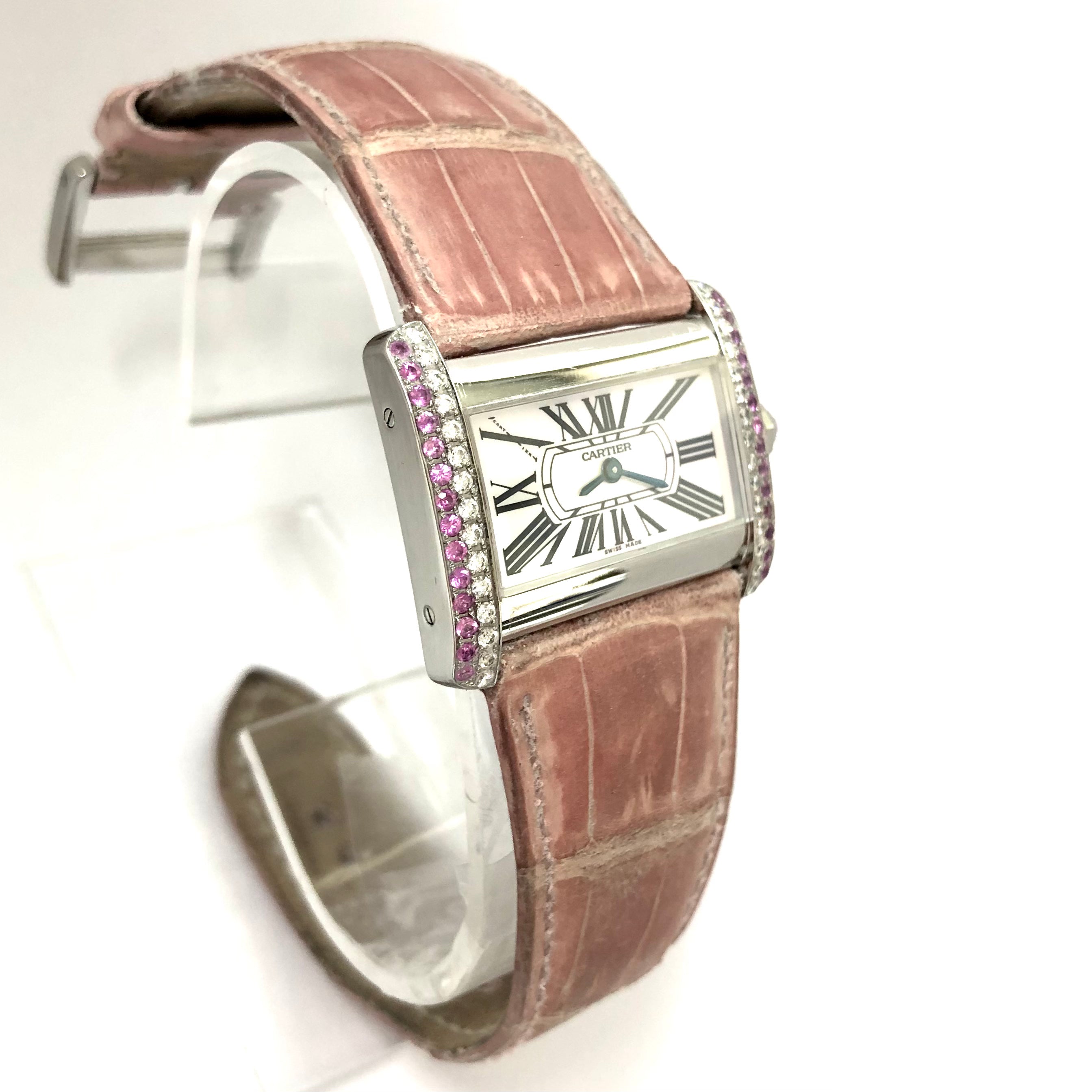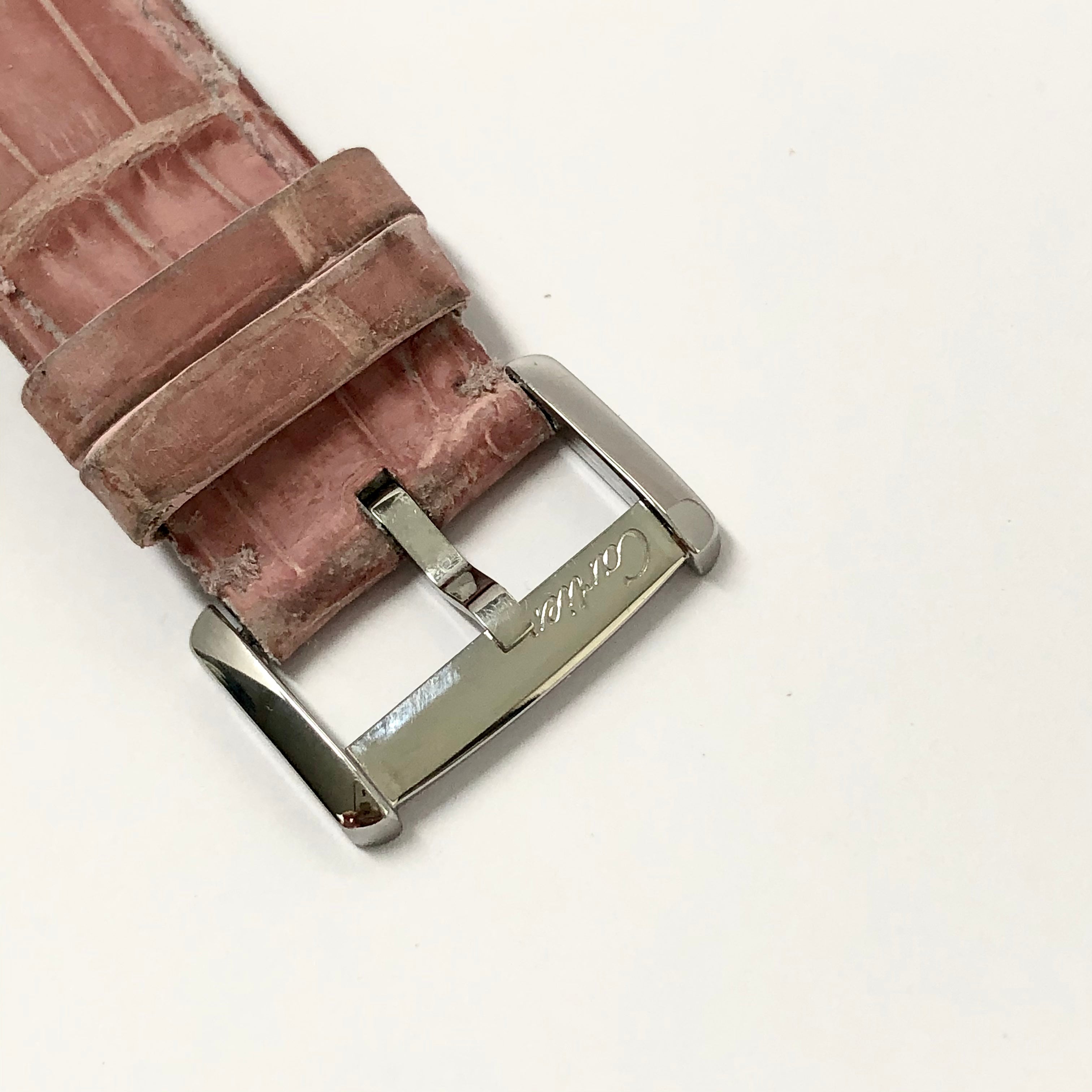 This Women's Cartier is a luxurious and stylish watch. The watch is made of Stainless Steel, offering a premium feel. The case measures 31 mm. The bracelet is made of Pink Genuine Leather. The bezel is made of Stainless Steel and is set with White. The dial is Pink, enhancing its visual appeal. Powered by a Quartz movement. Offered in Good condition, and comes with a seller's warranty of 60 months. Also available on custom order with additional options.