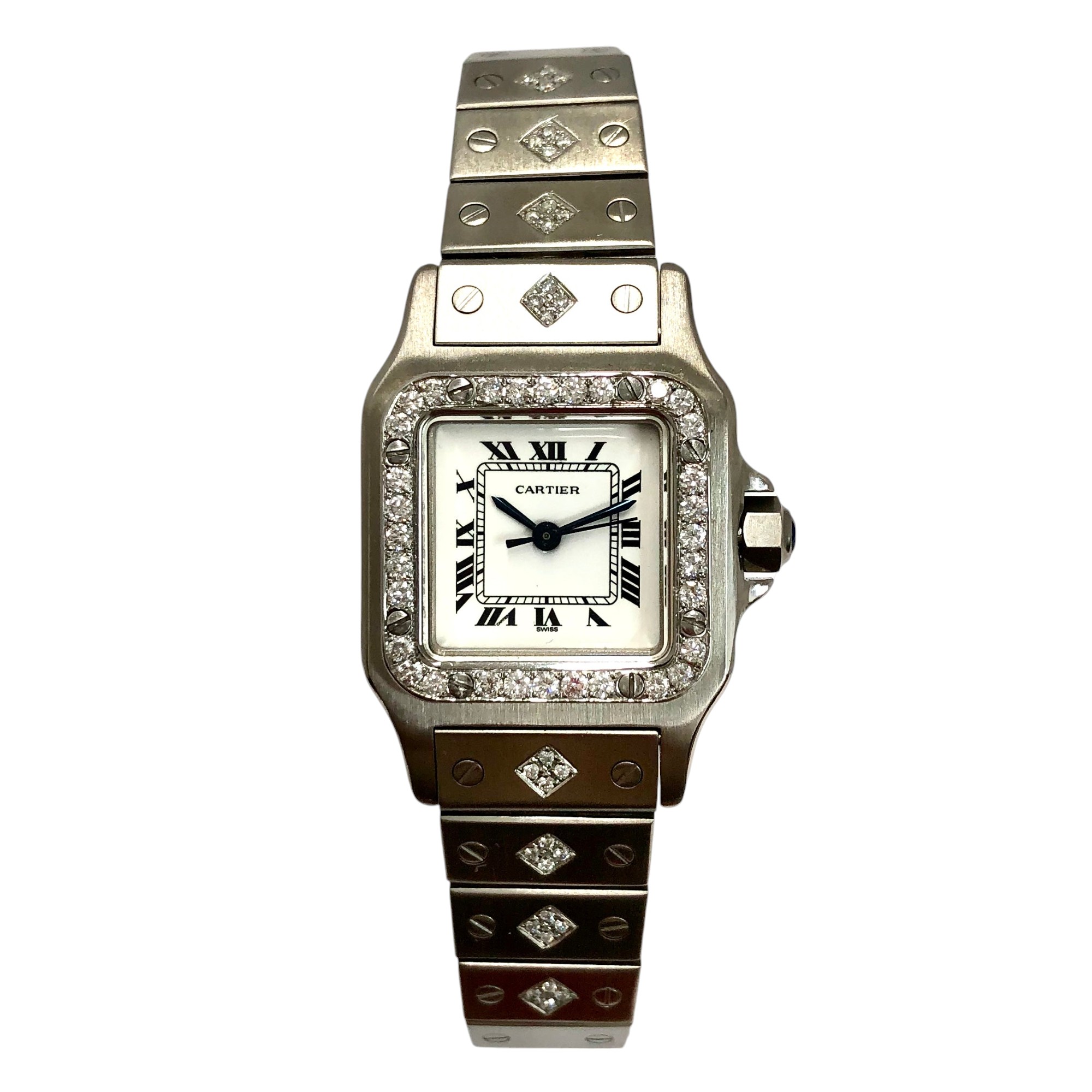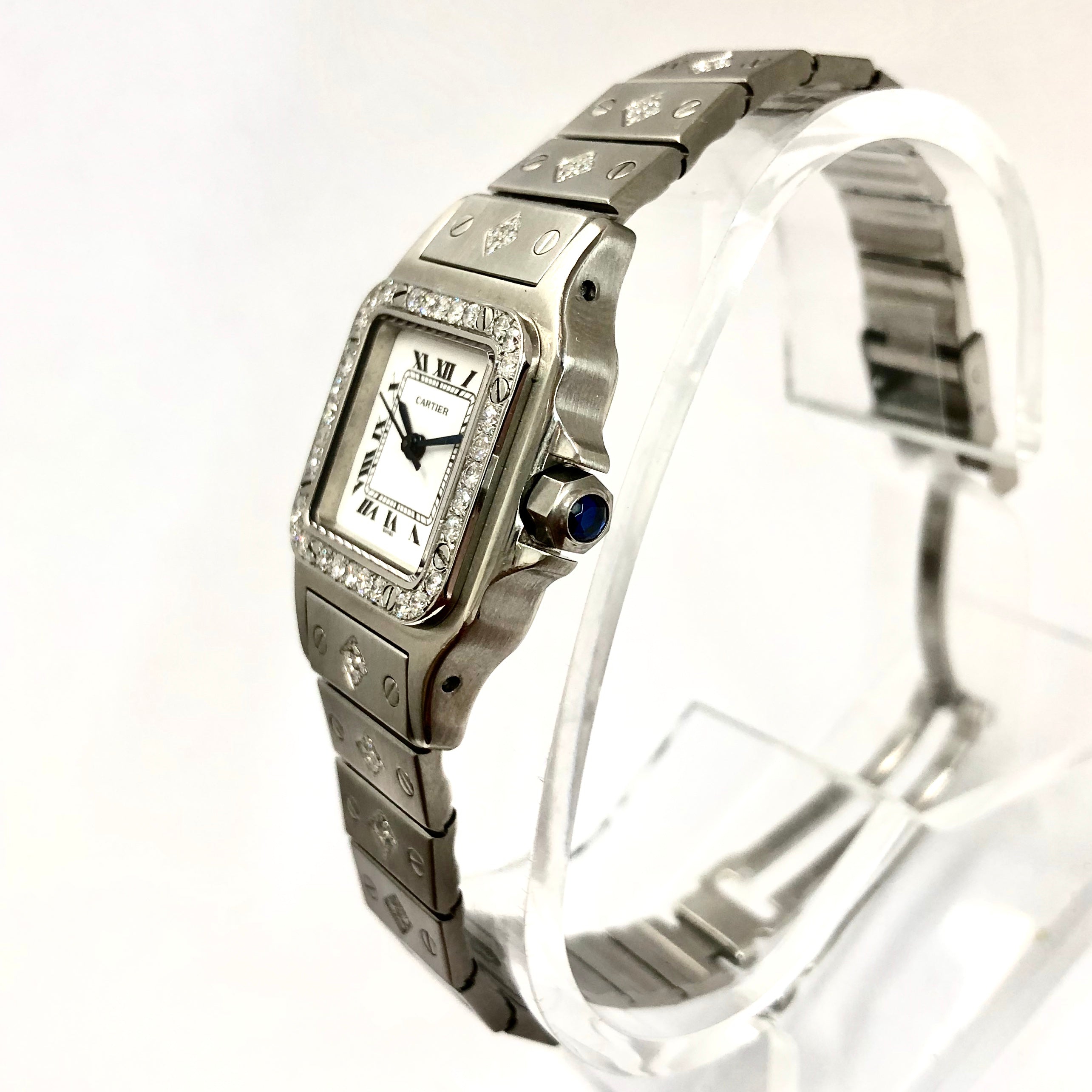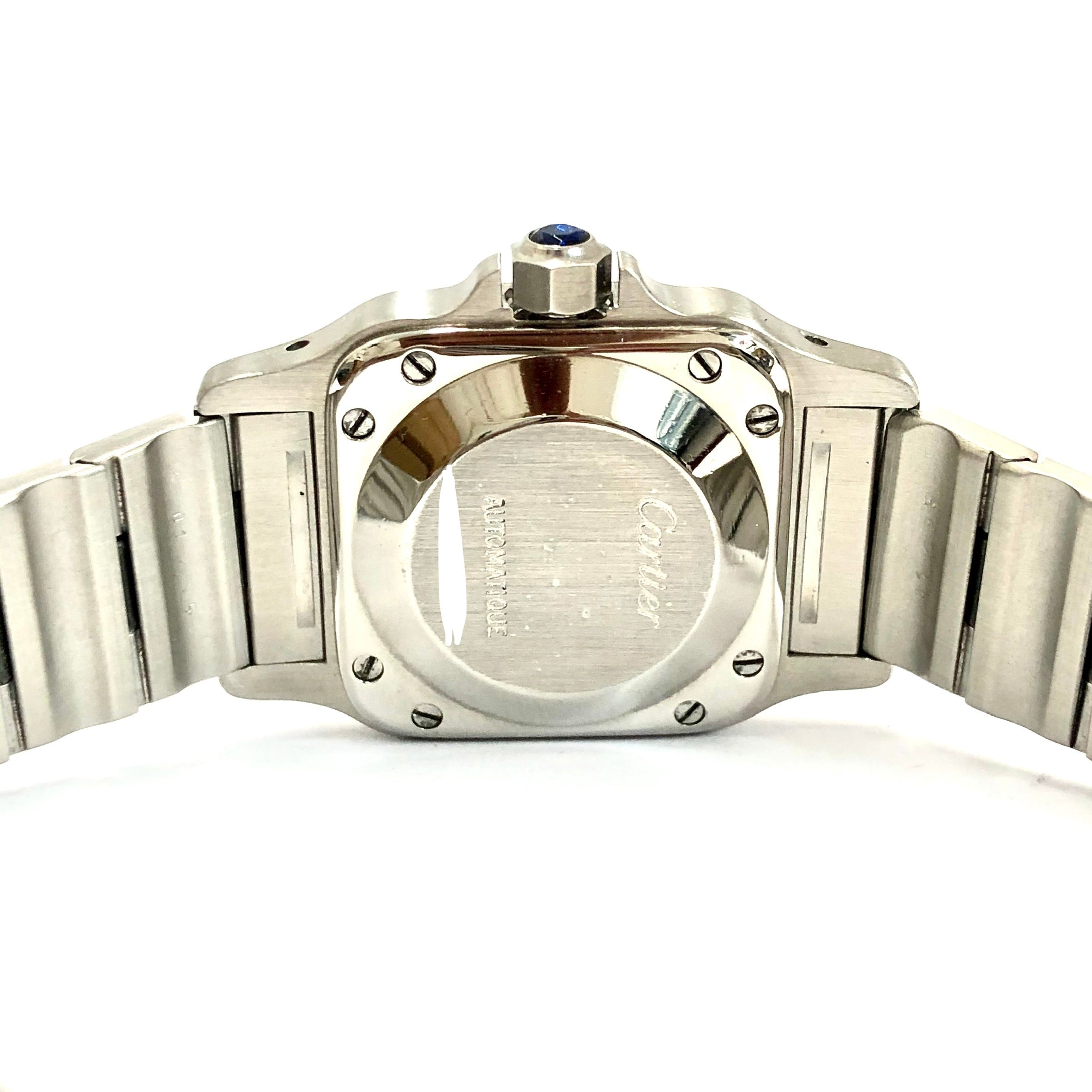 This Women's Cartier Santos de Cartier Galbee is a luxurious and stylish watch. The watch is made of Stainless Steel, offering a premium feel. The case measures 24 mm. The bracelet is made of Stainless Steel and is set with White. The dial is White, enhancing its visual appeal. Powered by an Automatic movement. Offered in Good condition, and comes with a seller's warranty of 60 months. Also available on custom order with additional options.