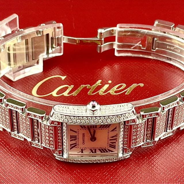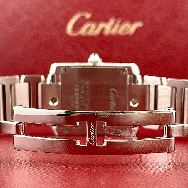 This Women's Cartier Tank Francaise is a luxurious and stylish watch. The watch is made of Stainless Steel, offering a premium feel. The case measures 20 mm. The bracelet is made of Stainless Steel and is set with White. The dial is Pink, enhancing its visual appeal. Powered by a Quartz movement. Offered in Good condition, and comes with a seller's warranty of 60 months. Also available on custom order with additional options.