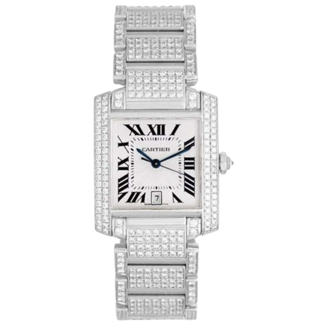This Women's Cartier Tank Francaise is a luxurious and stylish watch. The watch is made of Stainless Steel, offering a premium feel. The case measures 28 mm. The bracelet is made of Stainless Steel and is set with White. The dial is Silver, enhancing its visual appeal. Powered by an Automatic movement, the watch includes functions such as Date Indicator. Offered in Good condition, and comes with a seller's warranty of 60 months. Also available on custom order with additional options.