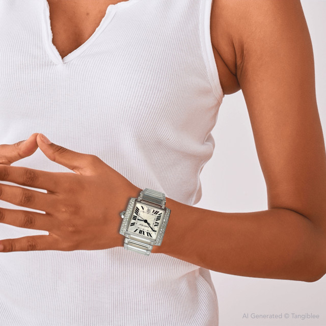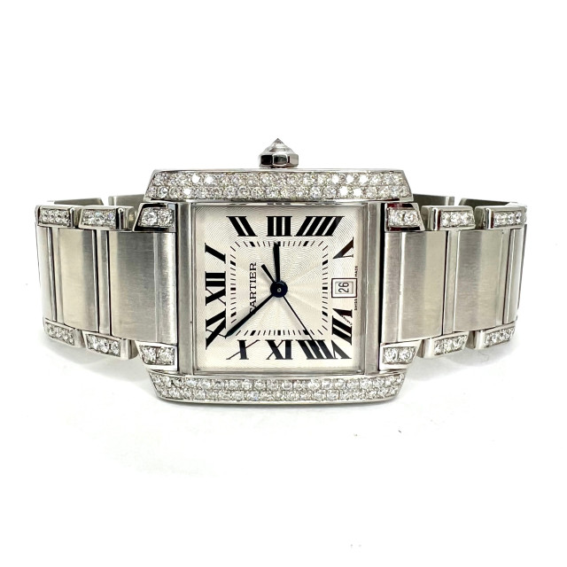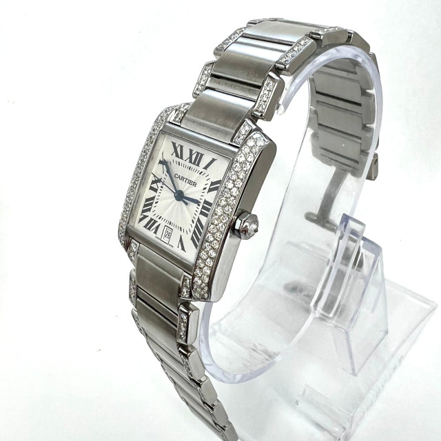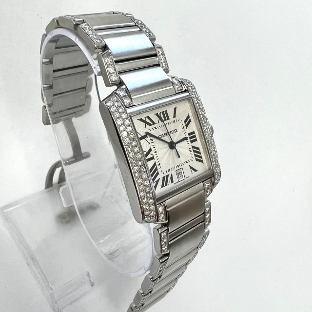This Women's Cartier Tank Francaise is a luxurious and stylish watch. The watch is made of Stainless Steel, offering a premium feel. The case measures 28 mm. The bracelet is made of Stainless Steel and is set with White. The dial is Silver, enhancing its visual appeal. Powered by an Automatic movement, the watch includes functions such as Date Indicator. Offered in Good condition, and comes with a seller's warranty of 60 months. Also available on custom order with additional options.