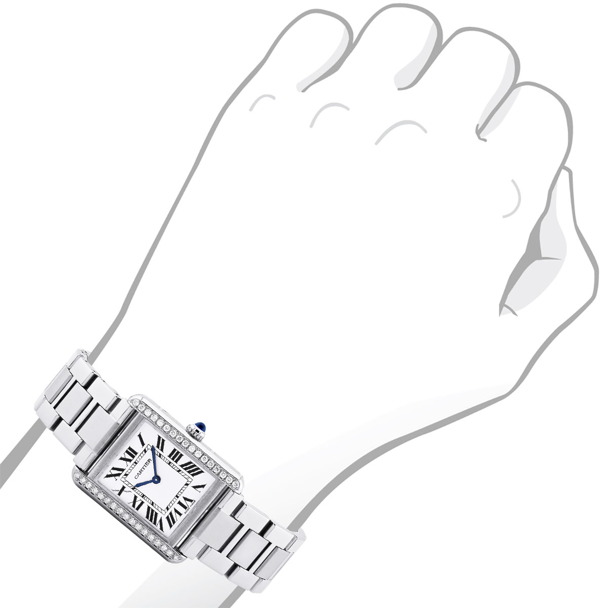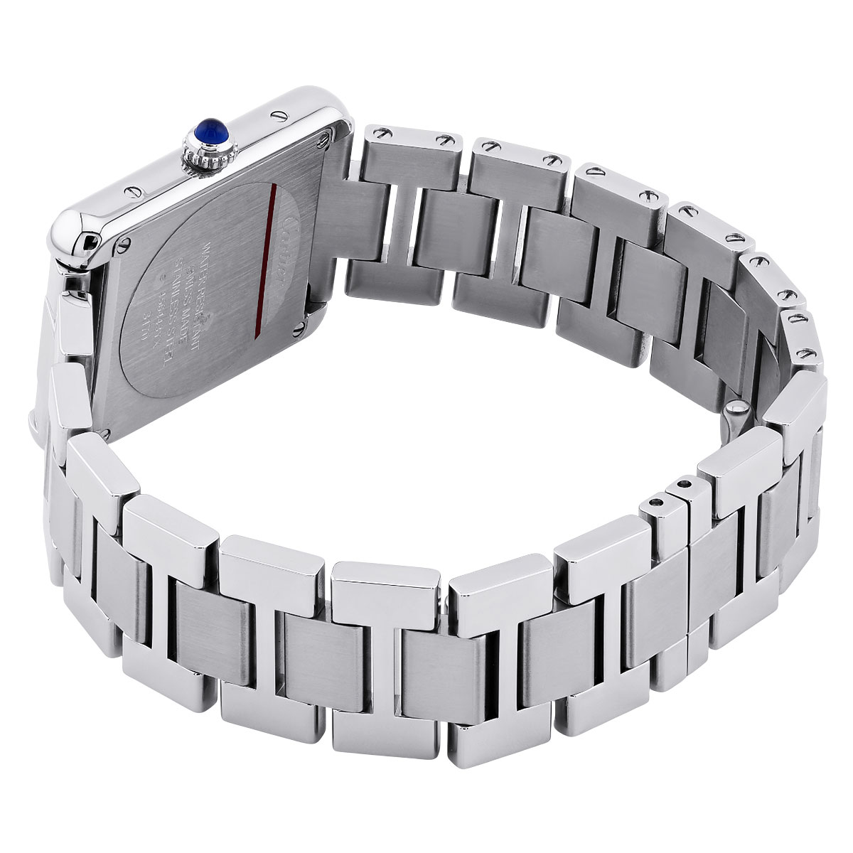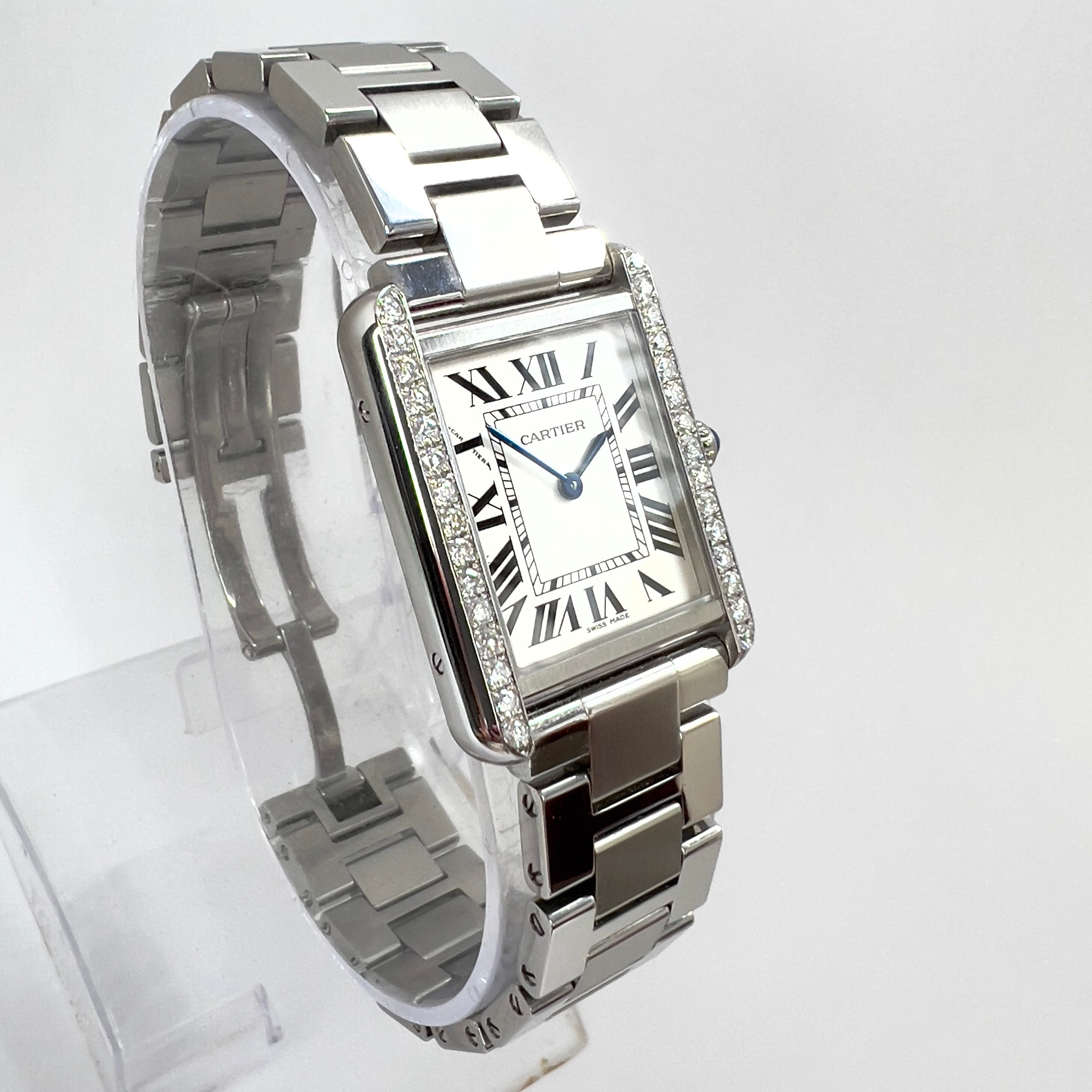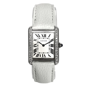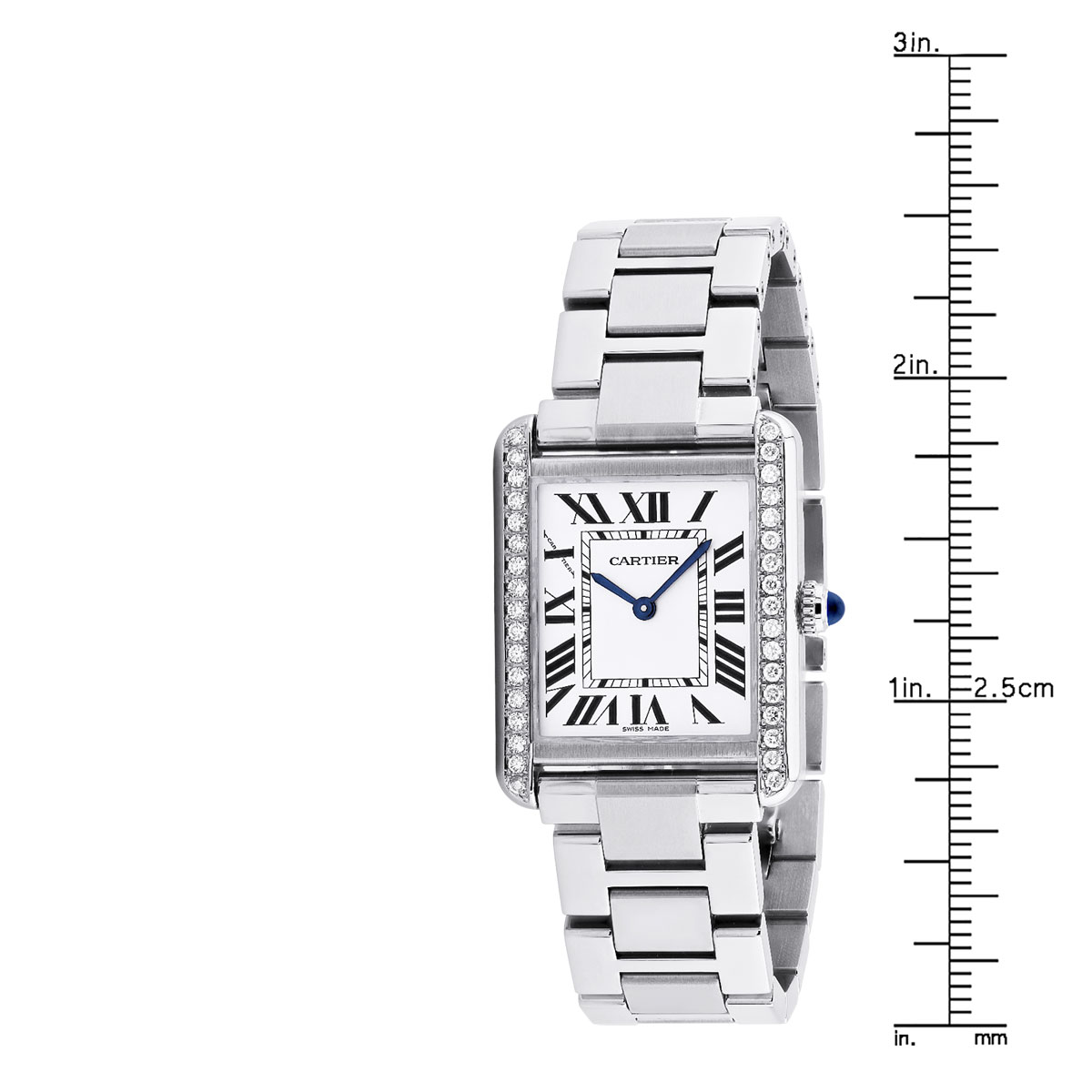 This Women's Cartier Tank Solo is a luxurious and stylish watch. The watch is made of Stainless Steel, offering a premium feel. The case measures 24 mm. The bracelet is made of Stainless Steel and is set with White. The dial is Silver, enhancing its visual appeal. Powered by a Quartz movement. Offered in Good condition, and comes with a seller's warranty of 60 months. Also available on custom order with additional options.