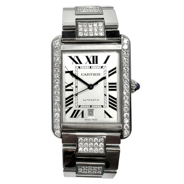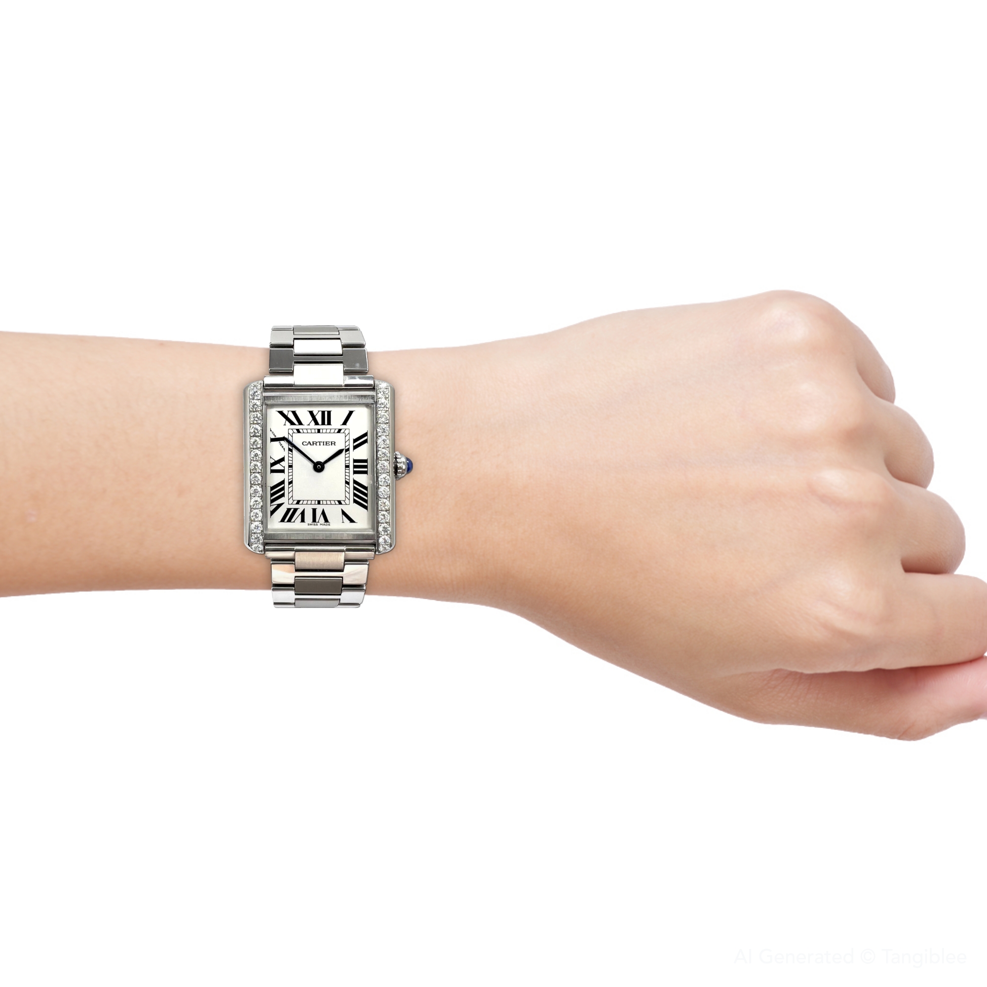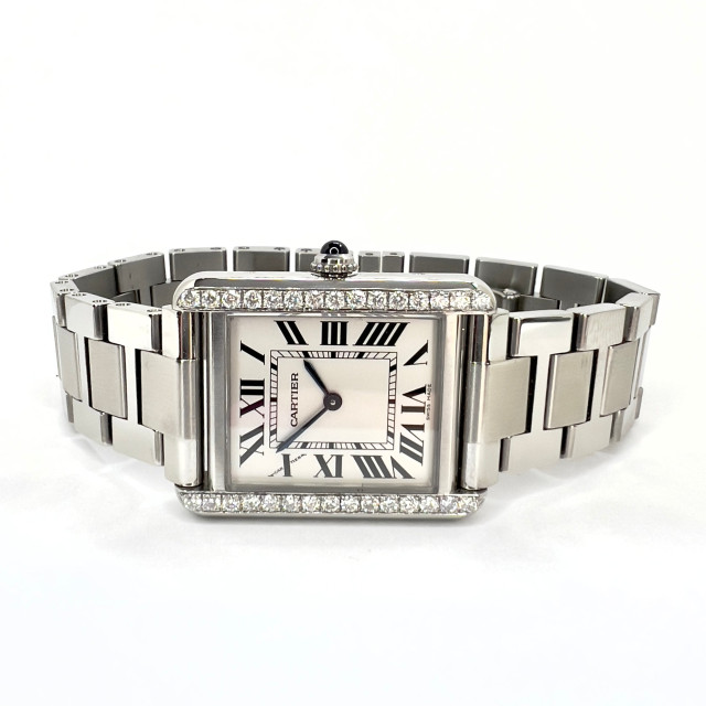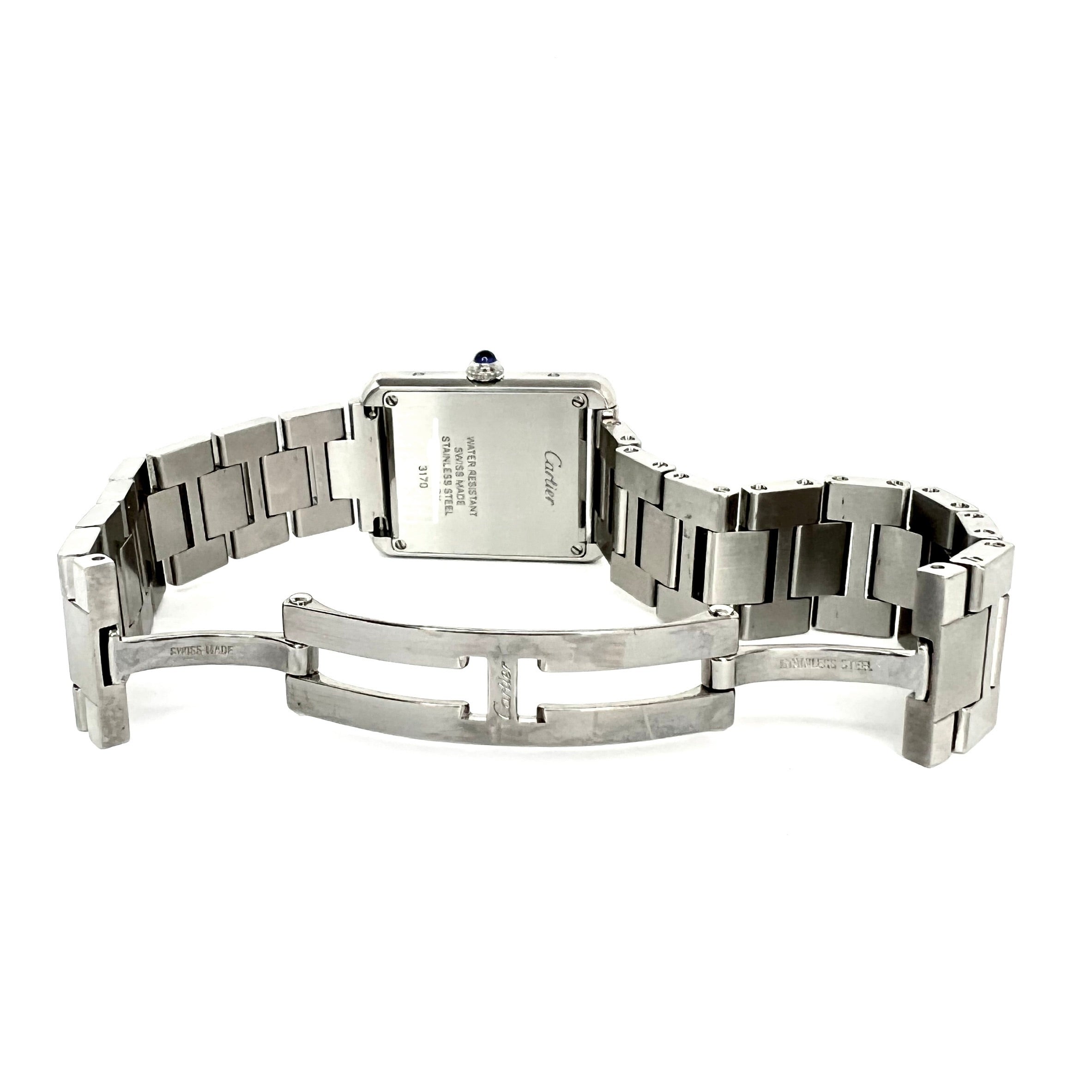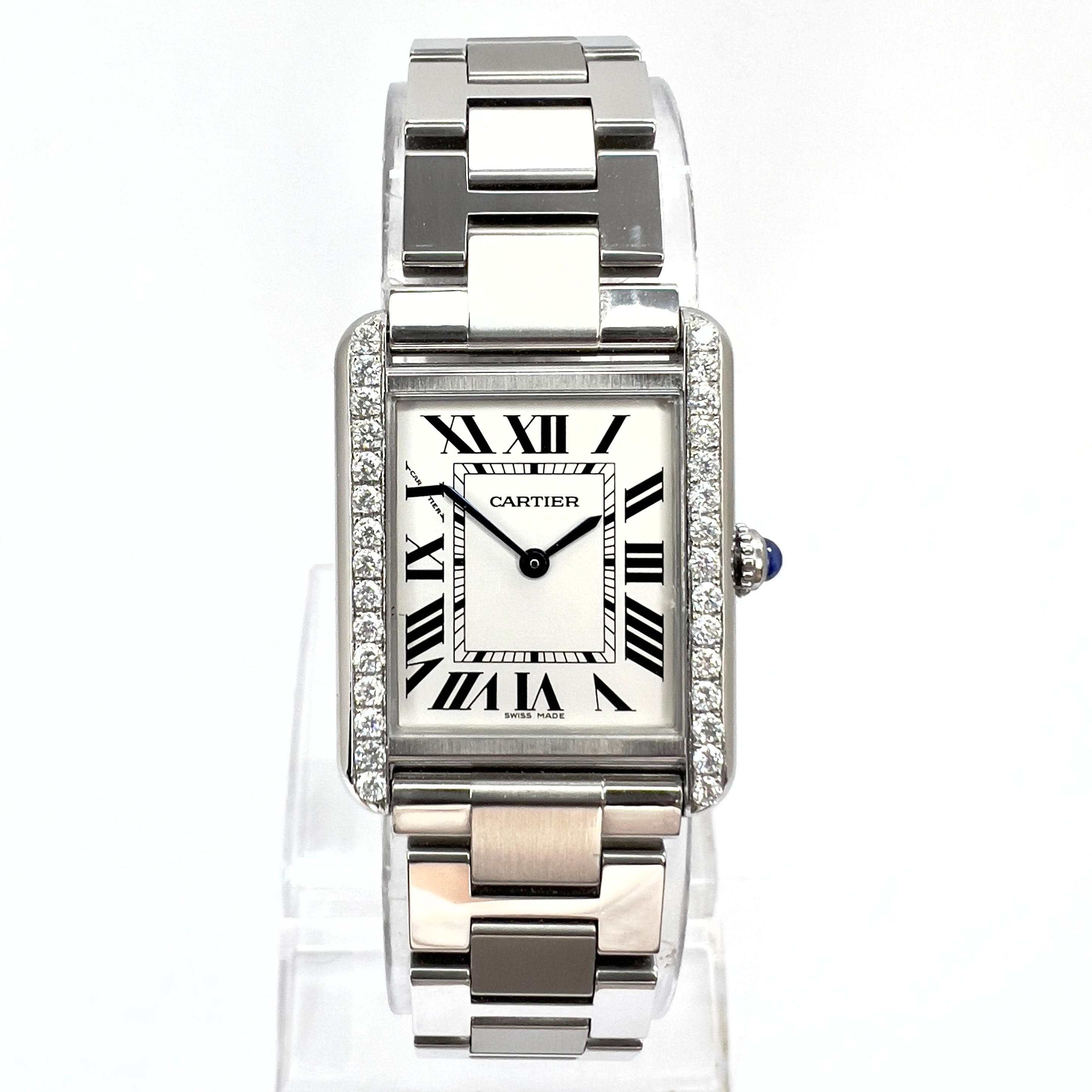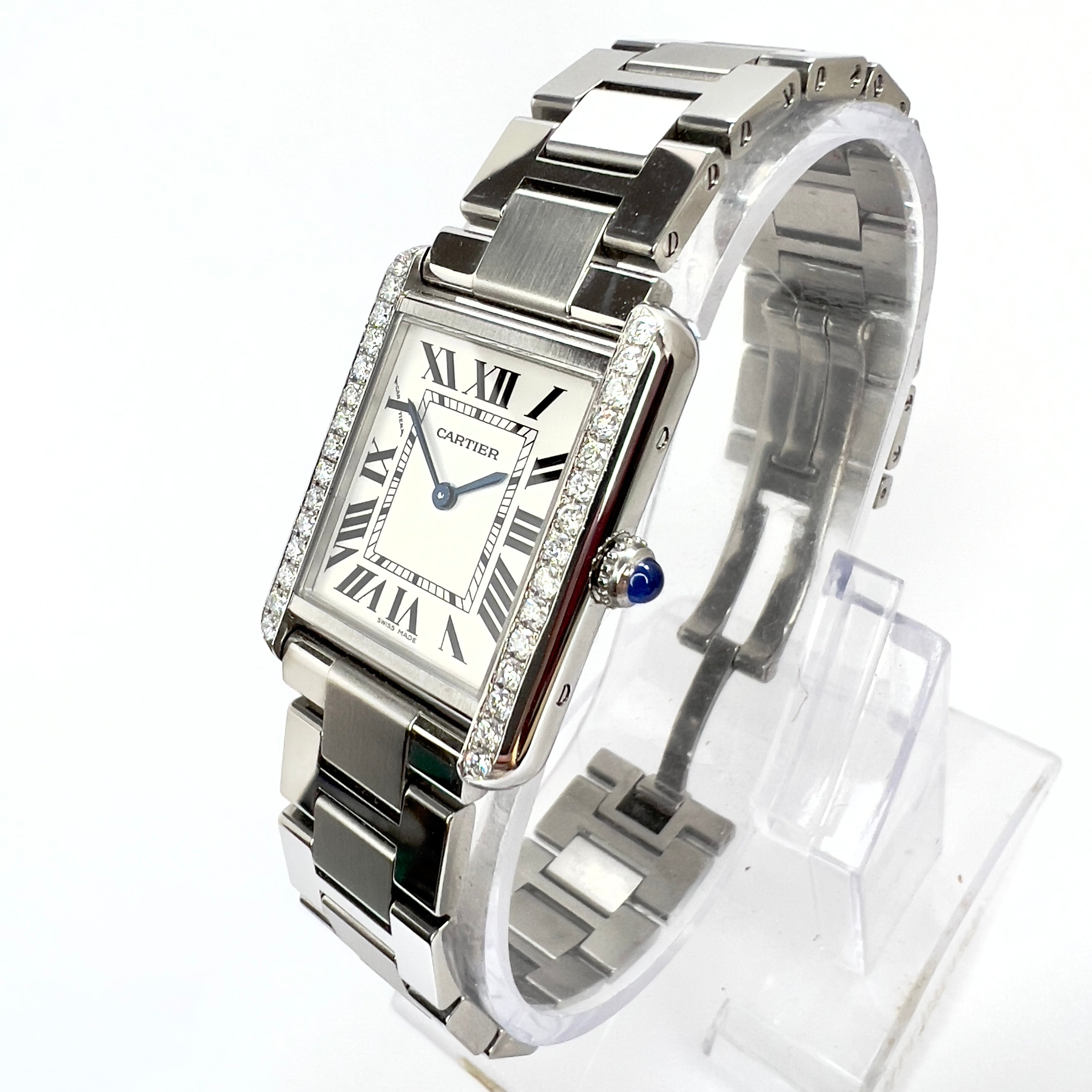 This Women's Cartier Tank Solo is a luxurious and stylish watch. The watch is made of Stainless Steel, offering a premium feel. The case measures 24 mm. The bracelet is made of Stainless Steel and is set with White. The dial is Silver, enhancing its visual appeal. Powered by a Quartz movement. Offered in Good condition, and comes with a seller's warranty of 60 months. Also available on custom order with additional options.