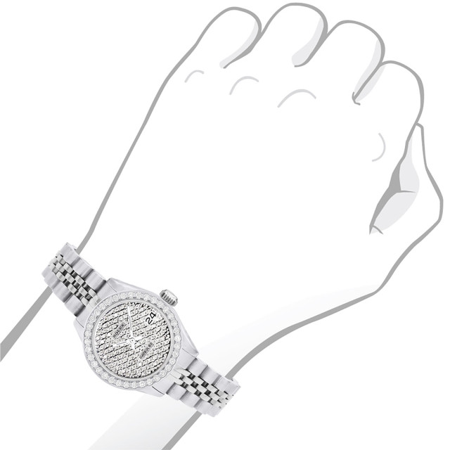 This Women's Bust Down Rolex Datejust is a luxurious and stylish watch. It features a White color scheme, adding sophistication to its design. The watch is made of Stainless Steel, offering a premium feel. The case measures 26 mm. The bracelet is made of White Stainless Steel It features a Jubilee style bracelet for a comfortable fit. The bezel is made of White Stainless Steel and is set with White Diamonds. The dial is Silver Tone, enhancing its visual appeal. Powered by an Automatic movement. Offered in Very Good condition, and comes with a seller's warranty of 60 months. Also available on custom order with additional options. These pre-owned Rolex watches are authentic Rolex watches with genuine diamonds, in excellent condition, they are checked for authenticity and basic water resistance. Watches will withstand an occasional rain just fine, but they are not diver's watches and should not be worn in shower or while swimming.