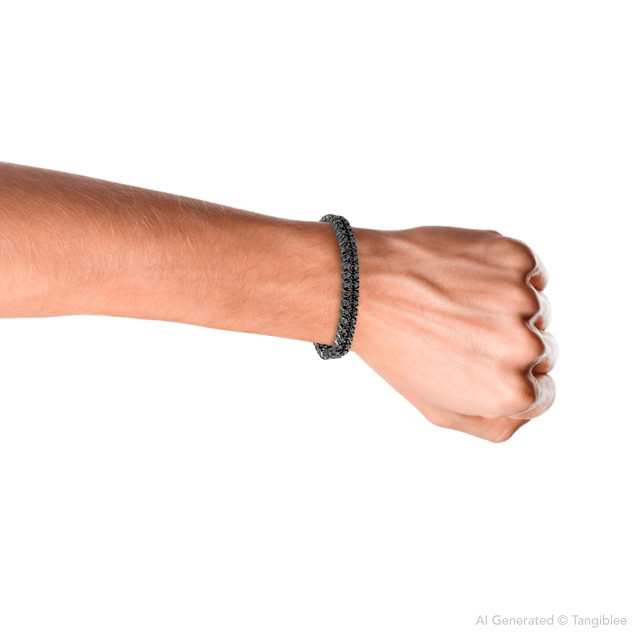 This Men's Diamond Tennis bracelet is made from k Sterling Silver, weighing 24.03 grams and is 8 mm wide and length inches. This Men's Diamond bracelet features 7 carats of Black Diamonds, showcasing a chain.