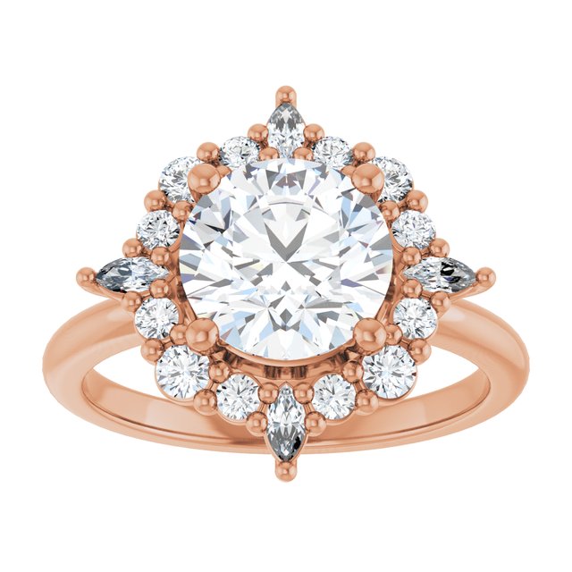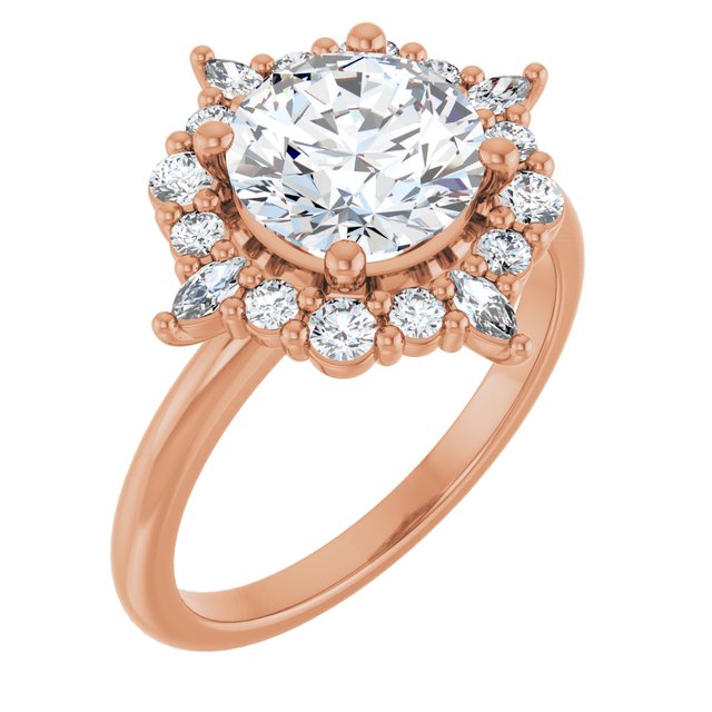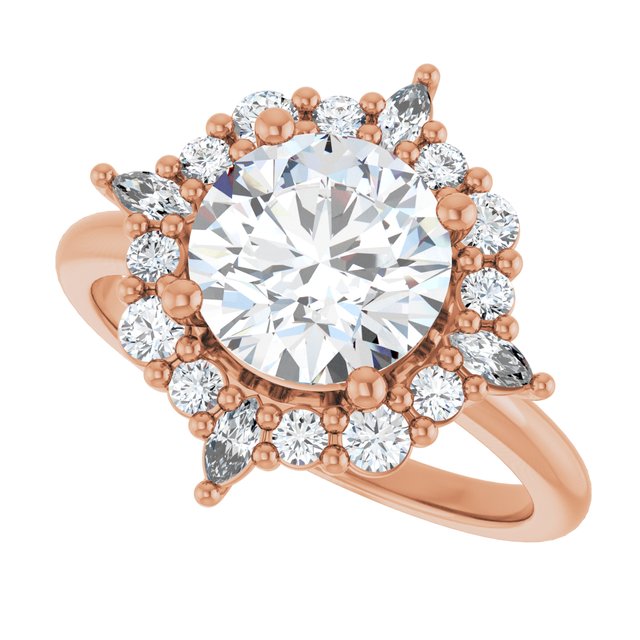 Stevie Women's 14K Gold Marquise and Round Cut Lab-Grown Diamond Thin Engagement Ring | Prong Shared Set | 2ct