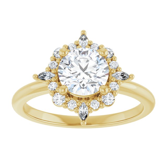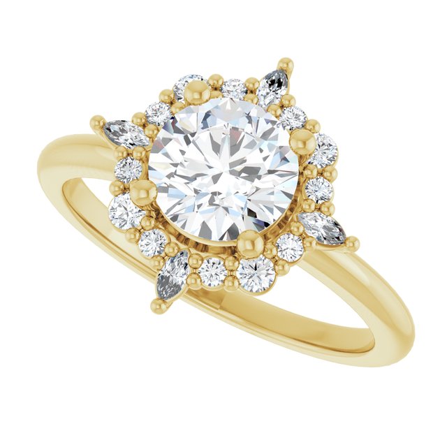 Stevie Women's 14K Gold Marquise and Round Cut Natural Diamond Thin Engagement Ring | Prong Shared Set | 1ct