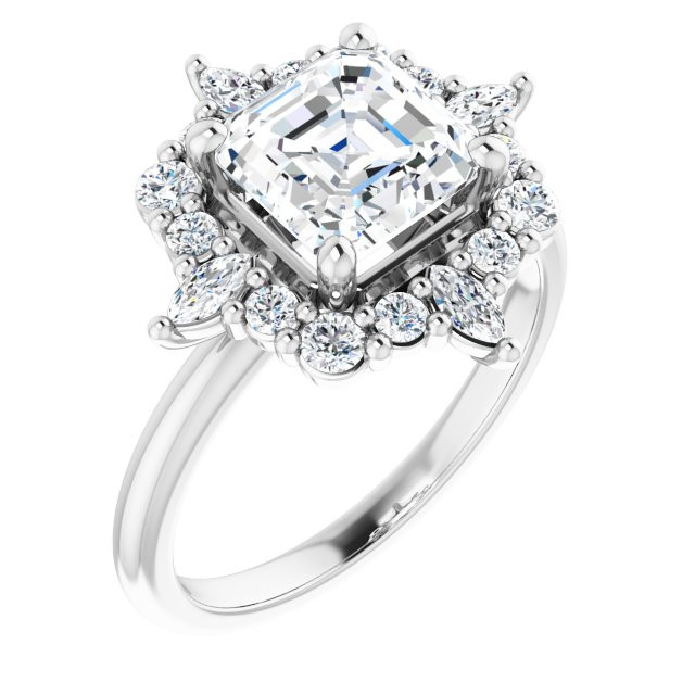 Stevie Women's Asscher and Marquise and Round Lab-Grown Diamond Thin Halo Engagement Ring | 14K Gold | VS1 | 2ct