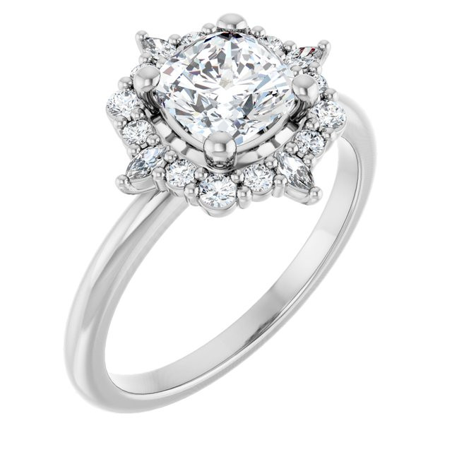 Stevie Women's Cushion and Marquise and Round Natural Diamond Thin Halo Engagement Ring | 14K Gold | 1ct