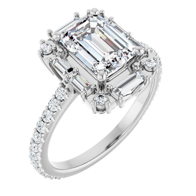 Summer Women's 14K Gold Straight Baguette and Emerald and Round Cut Lab-Grown Diamond Thin Engagement Ring | Prong Shared Set | 2ct