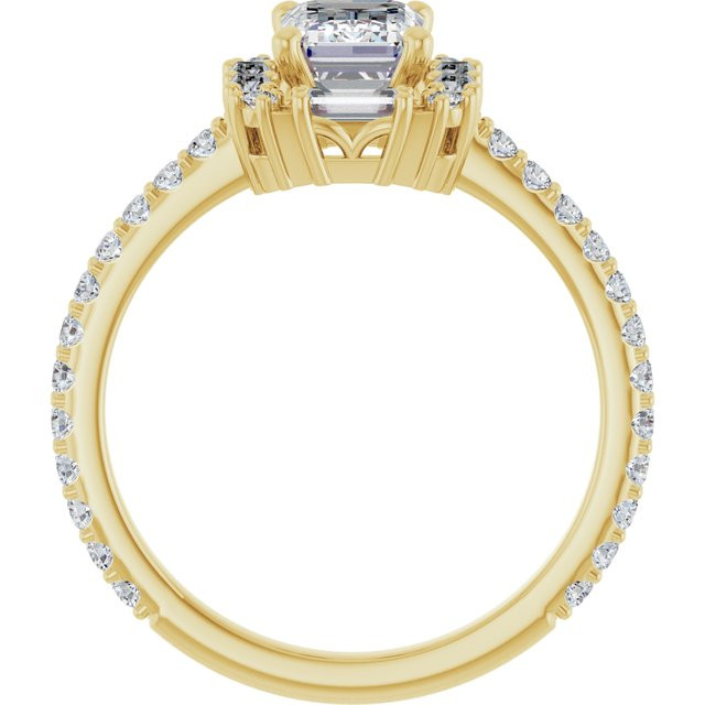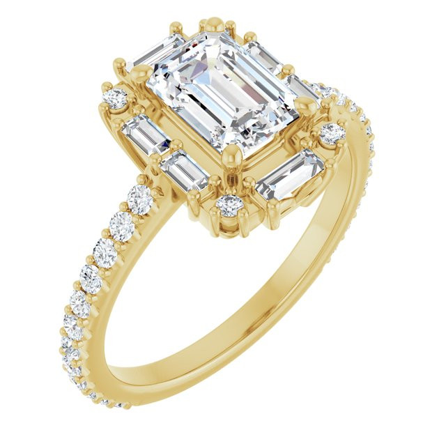 Summer Women's Straight Baguette and Emerald and Round Natural Diamond Halo Engagement Ring | 14K Gold | 1ct