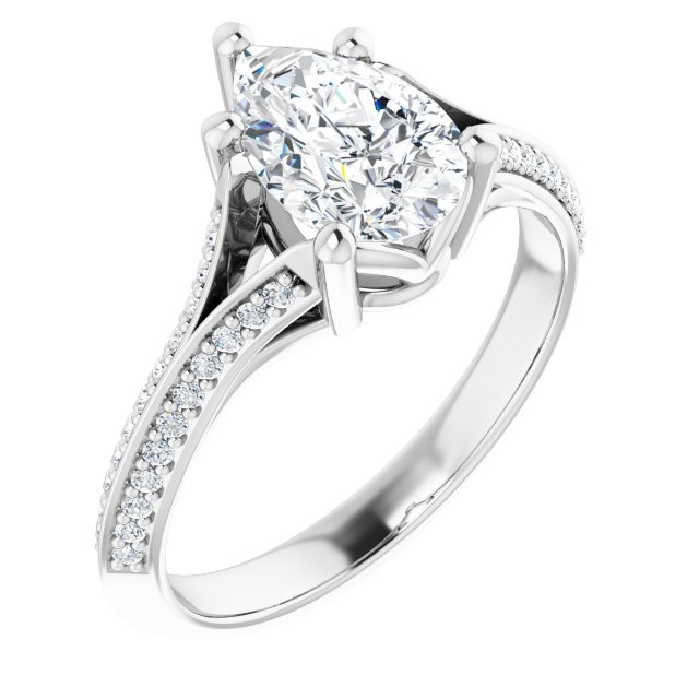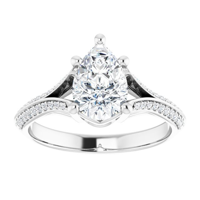 Taylor Women's 14K Gold Pear and Round Cut Lab-Grown Diamond Accented Thin Engagement Ring | Prong Pinpoint Set | 2ct