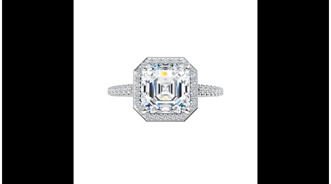 Vanessa Women's 14K Gold Asscher and Round Cut Lab-Grown Diamond Engagement Ring | Prong Pinpoint Shared Set | 2ct