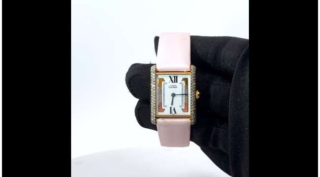 This Women's Cartier Must de Cartier Tank is a luxurious and stylish watch. It features a Yellow color scheme, adding sophistication to its design. The watch is made of Vermeil, offering a premium feel. The case measures 23 mm. The bracelet is made of Pink Genuine Leather and is set with White. The dial is White, enhancing its visual appeal. Powered by a Quartz movement. Offered in Good condition, and comes with a seller's warranty of 60 months. Also available on custom order with additional options.